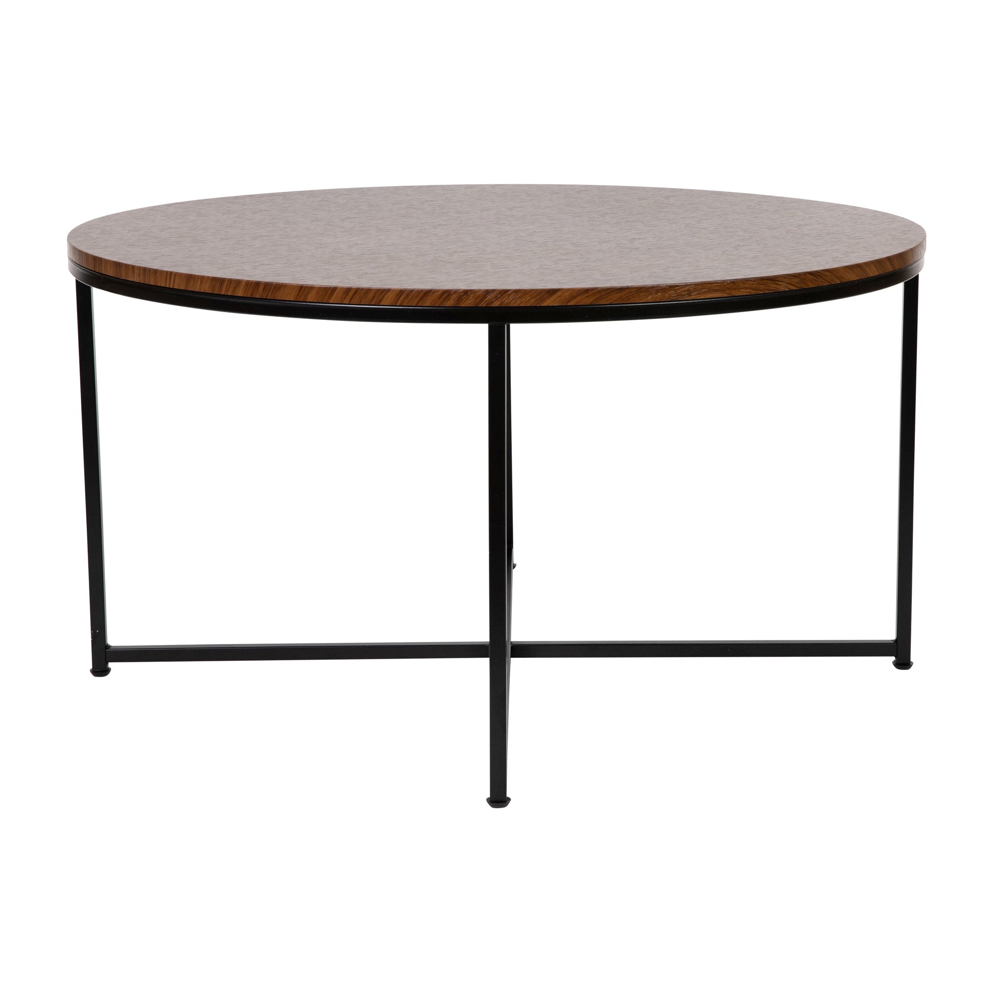 Hampstead Collection Coffee Table - Modern Walnut Finish Accent Table with Crisscross Matte Black Frame Dimensions: 35.5"W x 35.5"D x 19.25"H
