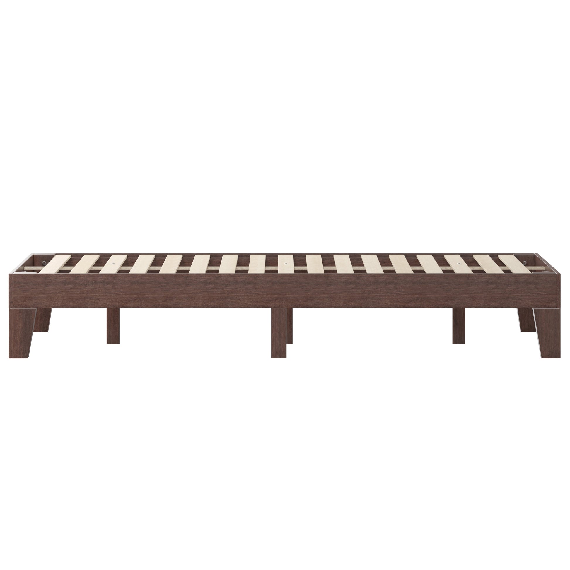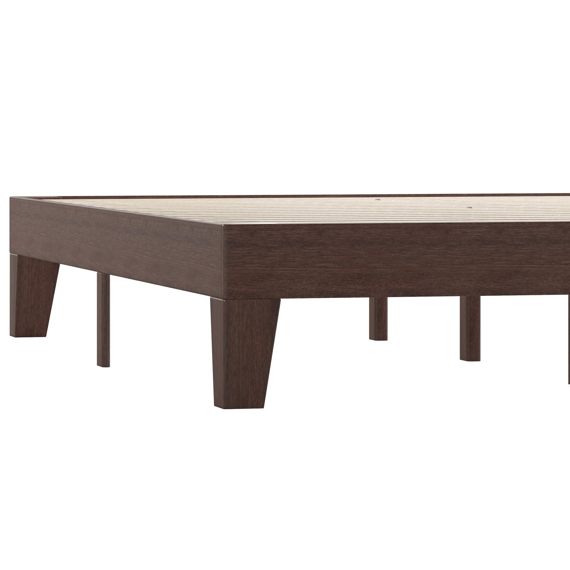 Evelyn Walnut Finish Wood Queen Platform Bed with Wooden Support Slats, No Box Spring Required Dimensions: 59.5"W x 79.5"D x 12.25"H
