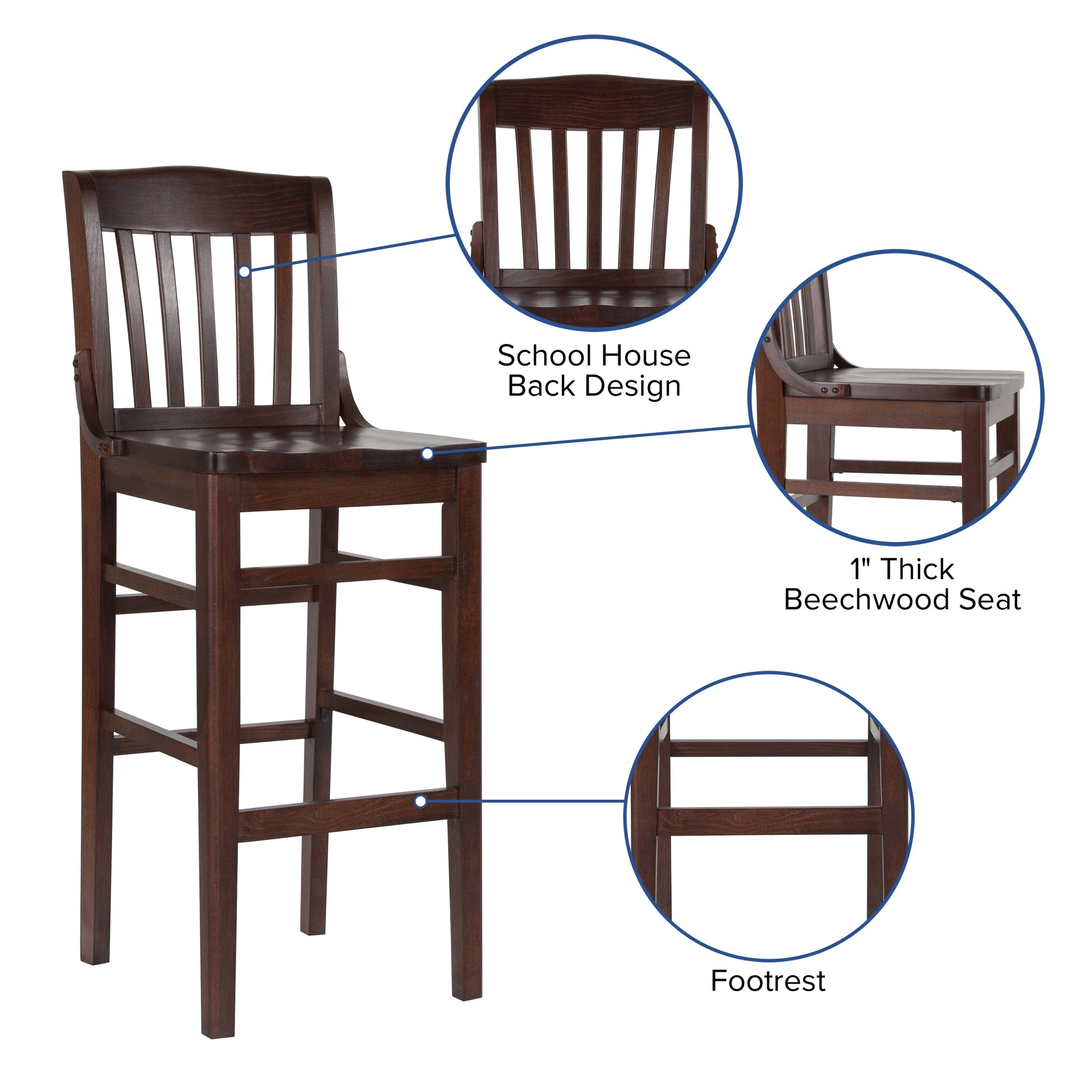HERCULES Series School House Back Walnut Wood Restaurant Barstool Dimensions: 18.5"W x 18.75"D x 44"H