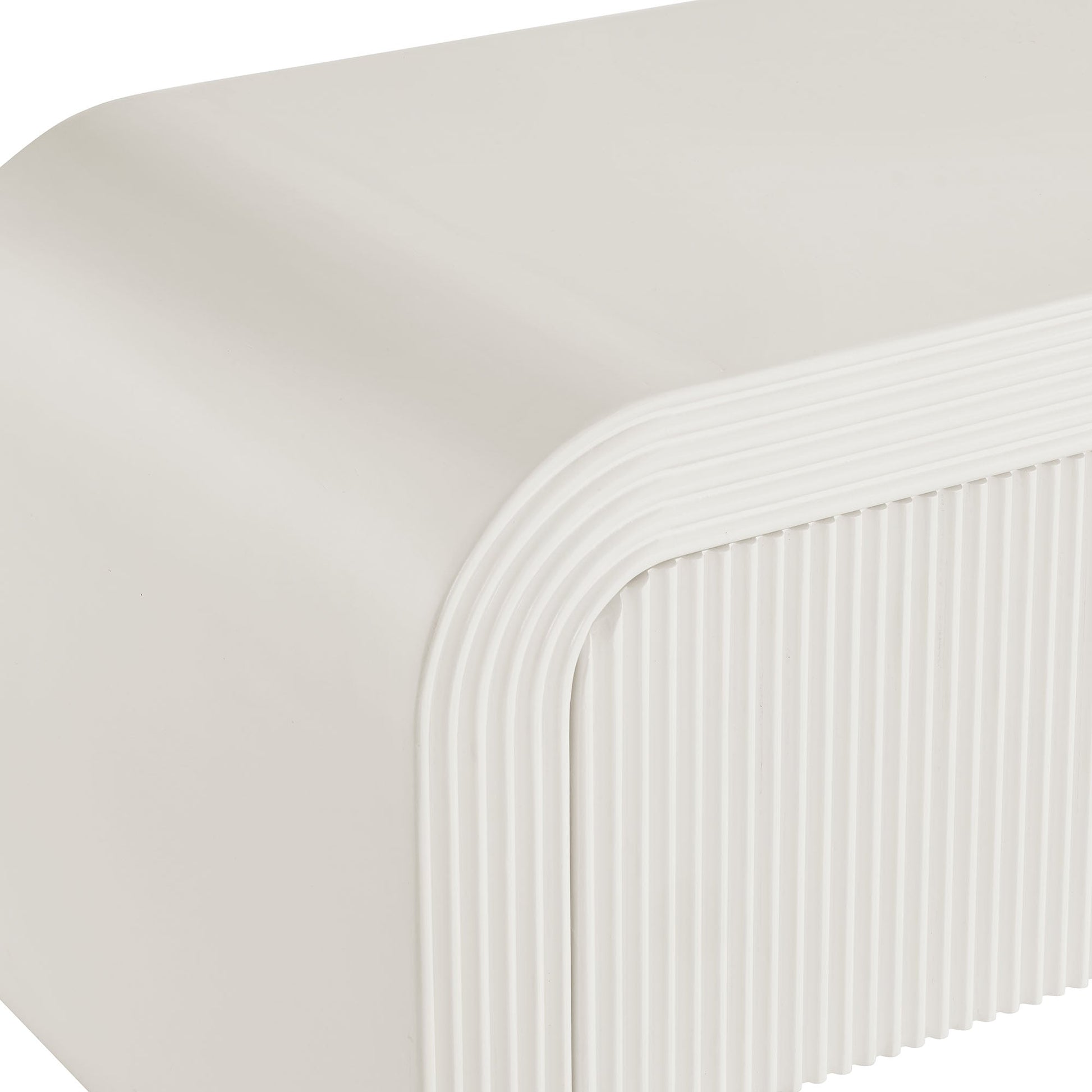 Elevate your home decor with a stunning blend of modern sophistication and functional versatility. This 68” Fluted TV Stand is expertly crafted with durable wood blend construction and finished with a charming wood veneer. The design features a captivating waterfall edge that seamlessly flows into fluted detailing along the doors and sides, creating a striking visual appeal.