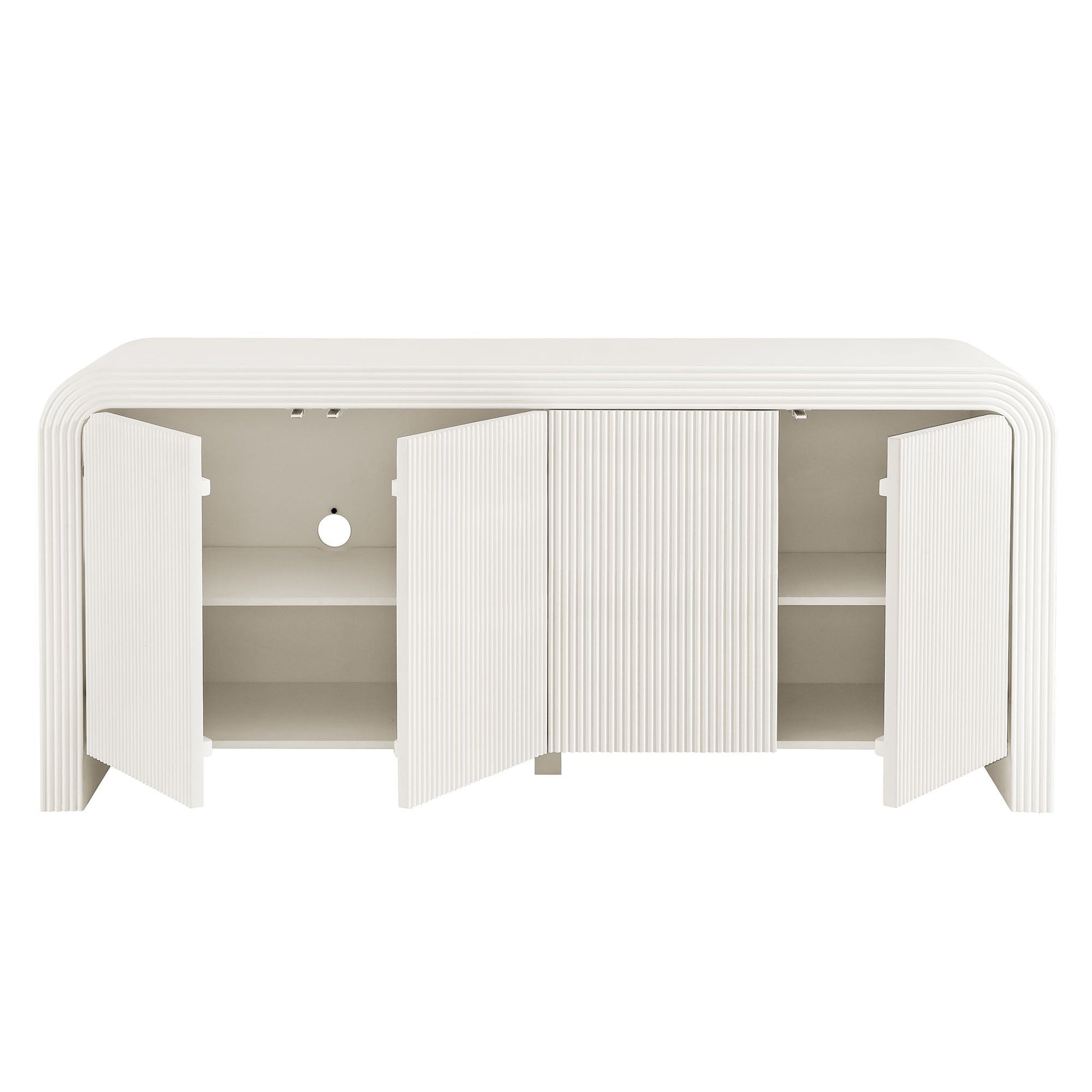 Elevate your home decor with this exquisite Fluted Sideboard Cabinet, a perfect fusion of modern elegance and practical functionality. Expertly crafted from a durable wood blend, this stunning cabinet showcases a charming wood veneer finish that enhances its sophisticated appeal. The unique waterfall edge design flows seamlessly into fluted detailing along the doors and sides, creating a visually striking centerpiece for any room.