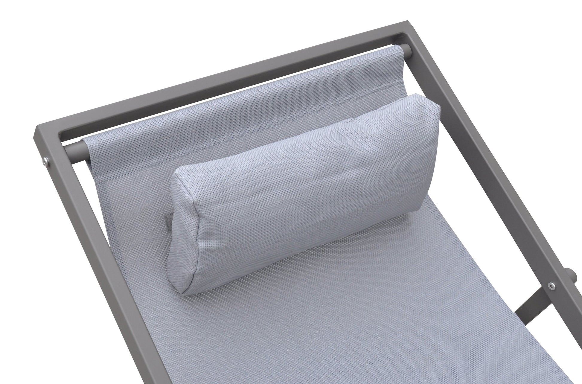 The Armen Living Wave outdoor patio deck chair is a novel piece, sure to enhance the beauty of any contemporary household patio. The Wave features a durable aluminum frame that offers durability without compromising on the aesthetics of the piece. The Wave's seat and back features a gray sling textilene that provides an exceptional degree of comfort. The headrest of this elegant deck chair is padded to provide additional support for the user's neck. Beautiful and unique, the Wave is available in your choice of gray or while powder coat finish.