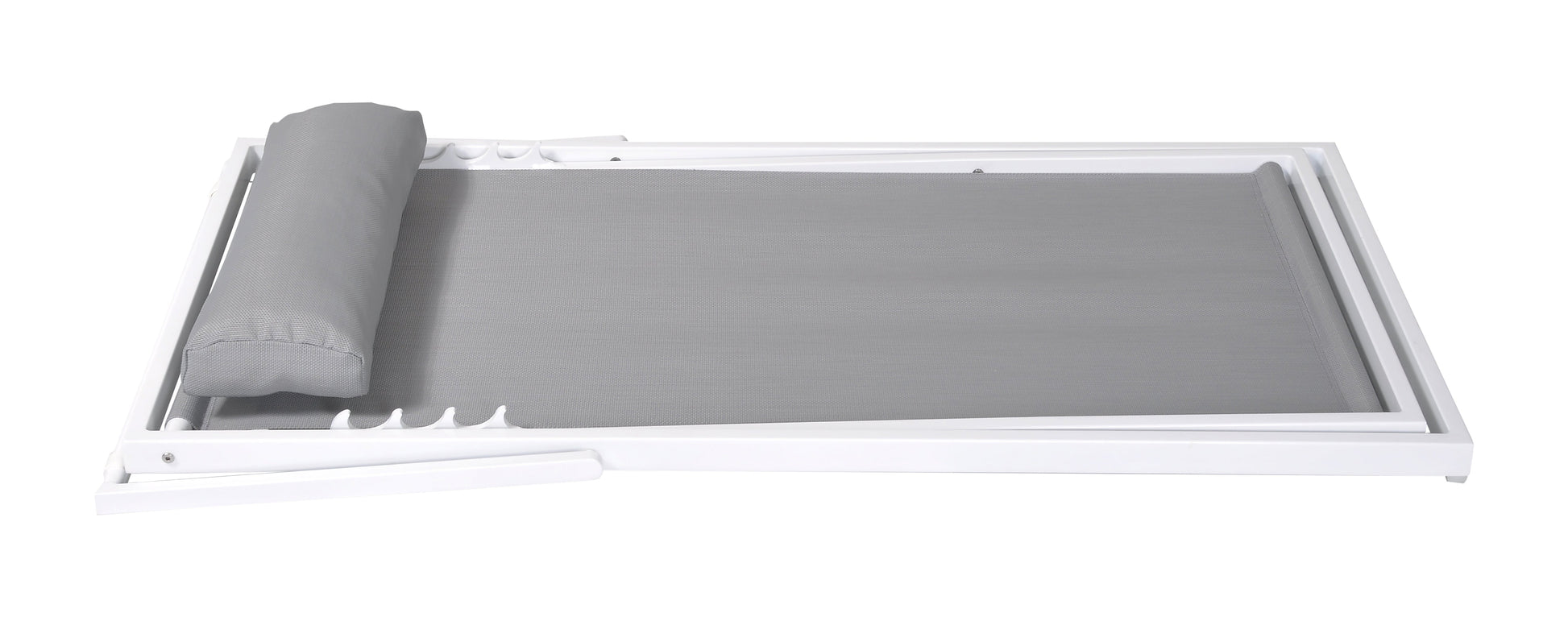 Wave Outdoor Patio Aluminum Deck Chair in White Powder Coated Finish with Gray Sling Textilene