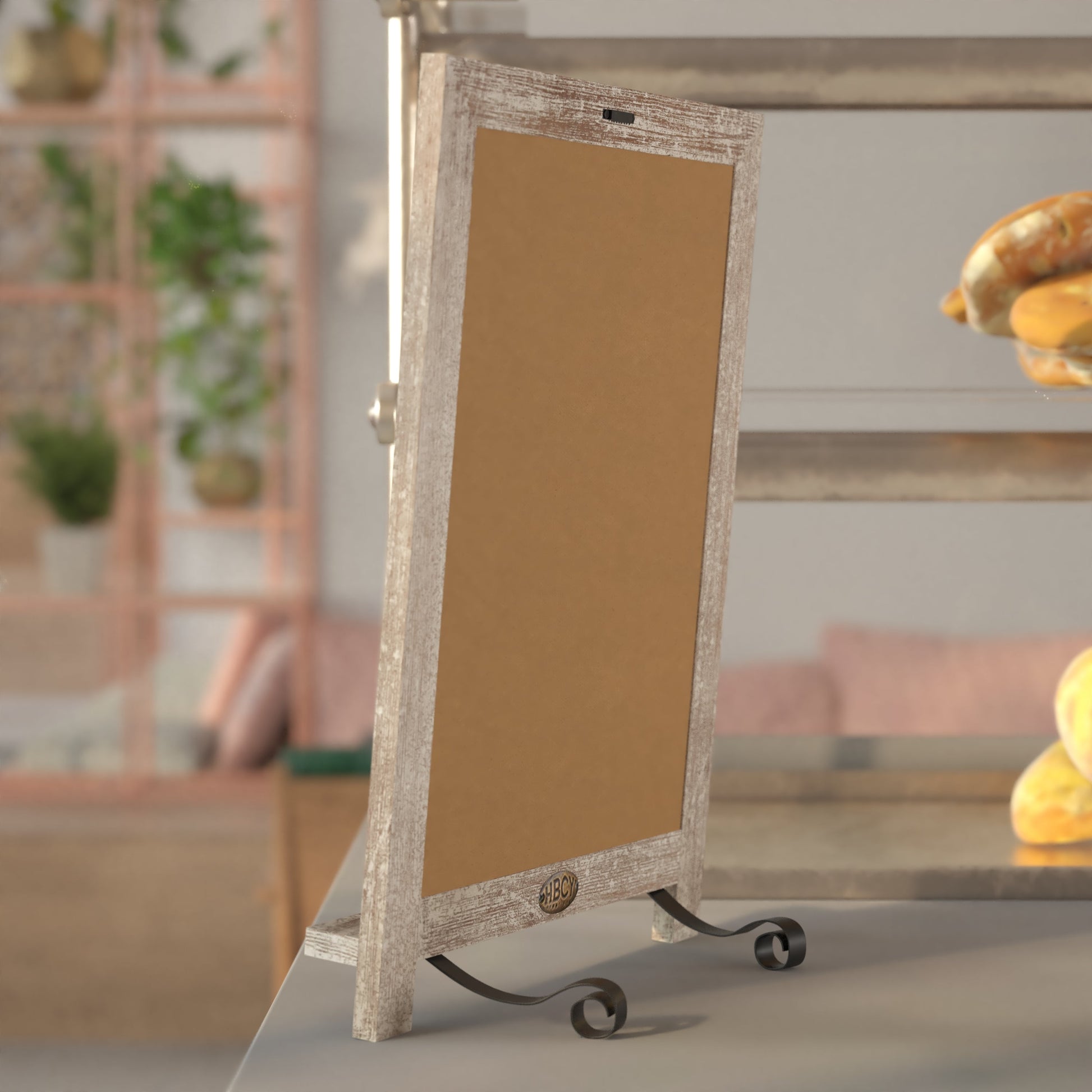 Canterbury 12" x 17" Weathered Tabletop Magnetic Chalkboard Sign with Metal Scrolled Legs, Hanging Wall Chalkboard, Countertop Memo Board Dimensions: 12"W x 1.88"D x 17"H