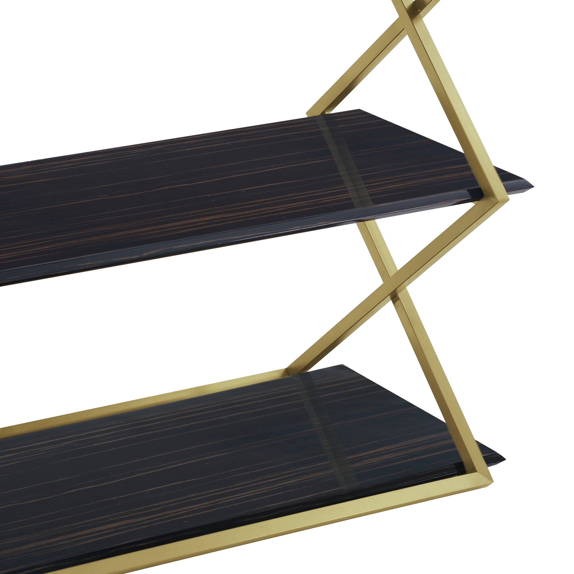 Westlake 3-Tier Dark Brown Console Table with Brushed Gold Legs