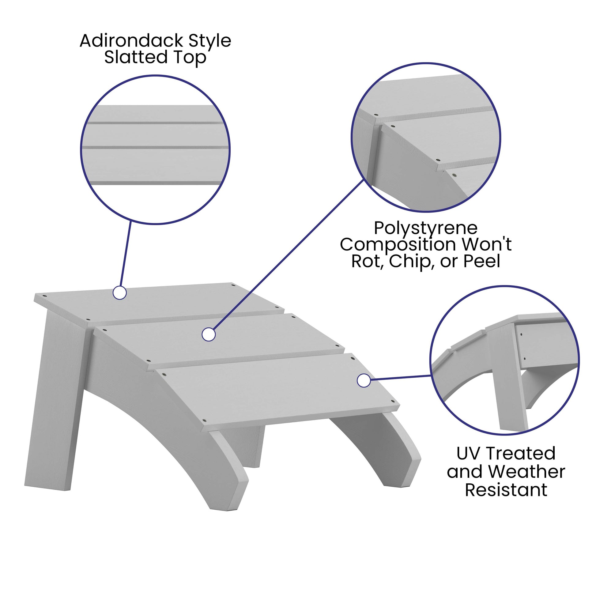 Sawyer Modern Commercial Grade All-Weather Poly Resin Wood Adirondack Ottoman Foot Rest in White Dimensions: 19.5"W x 20.5"D x 13.5"H