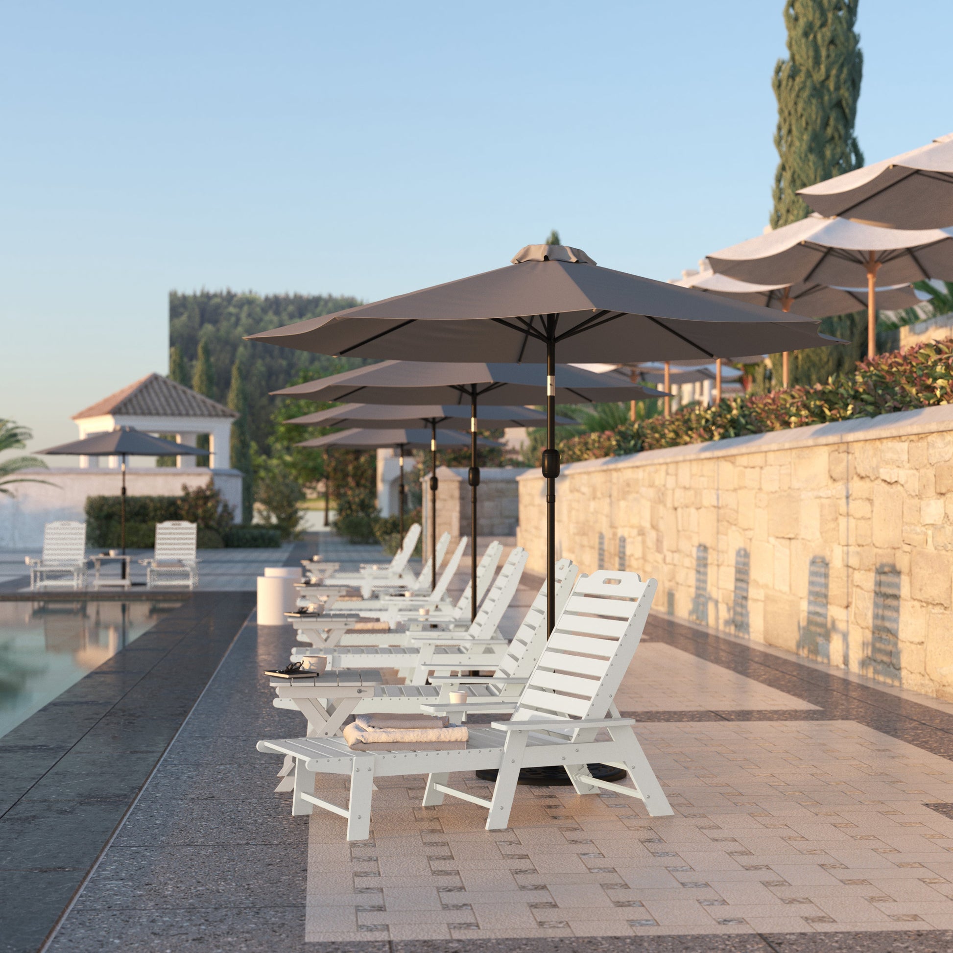 Monterey Adjustable Adirondack Lounger with Cup Holder- All-Weather Indoor/Outdoor HDPE Lounge Chair in White Dimensions: 35"W x 71.25"D x 34.75"H
