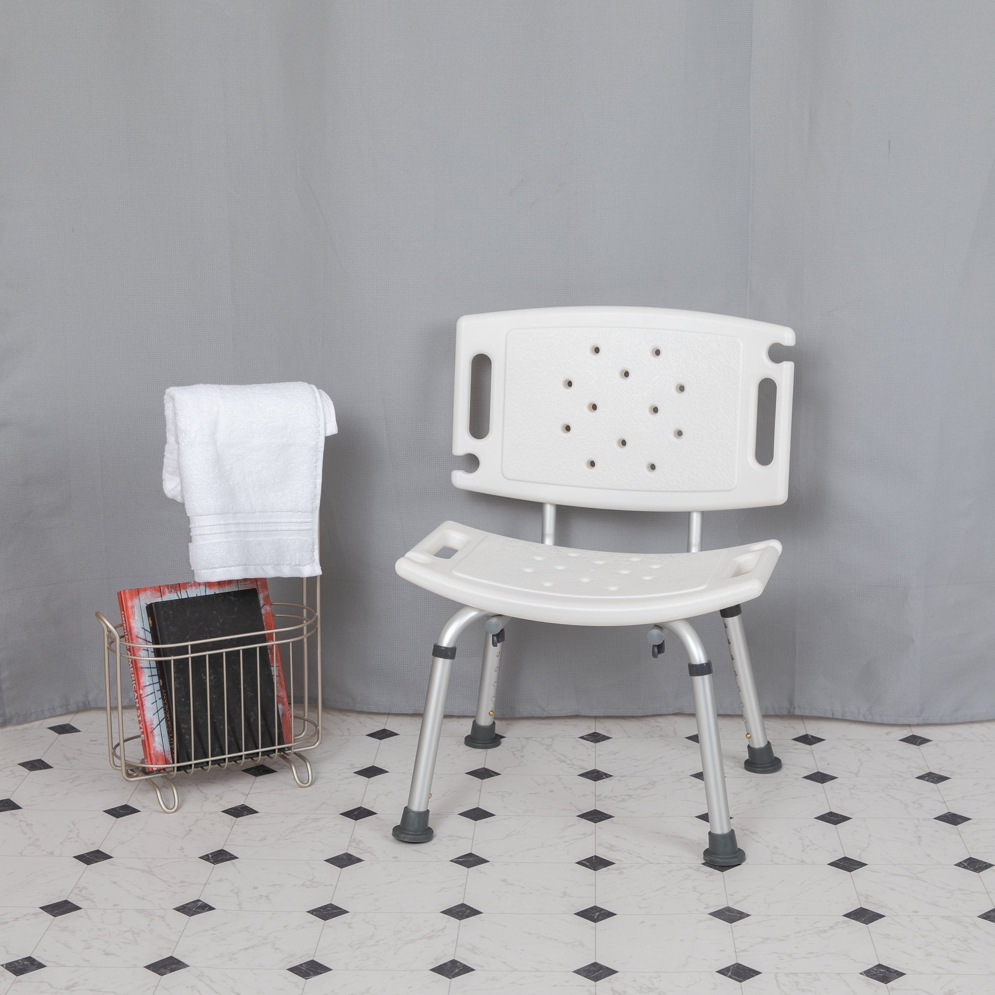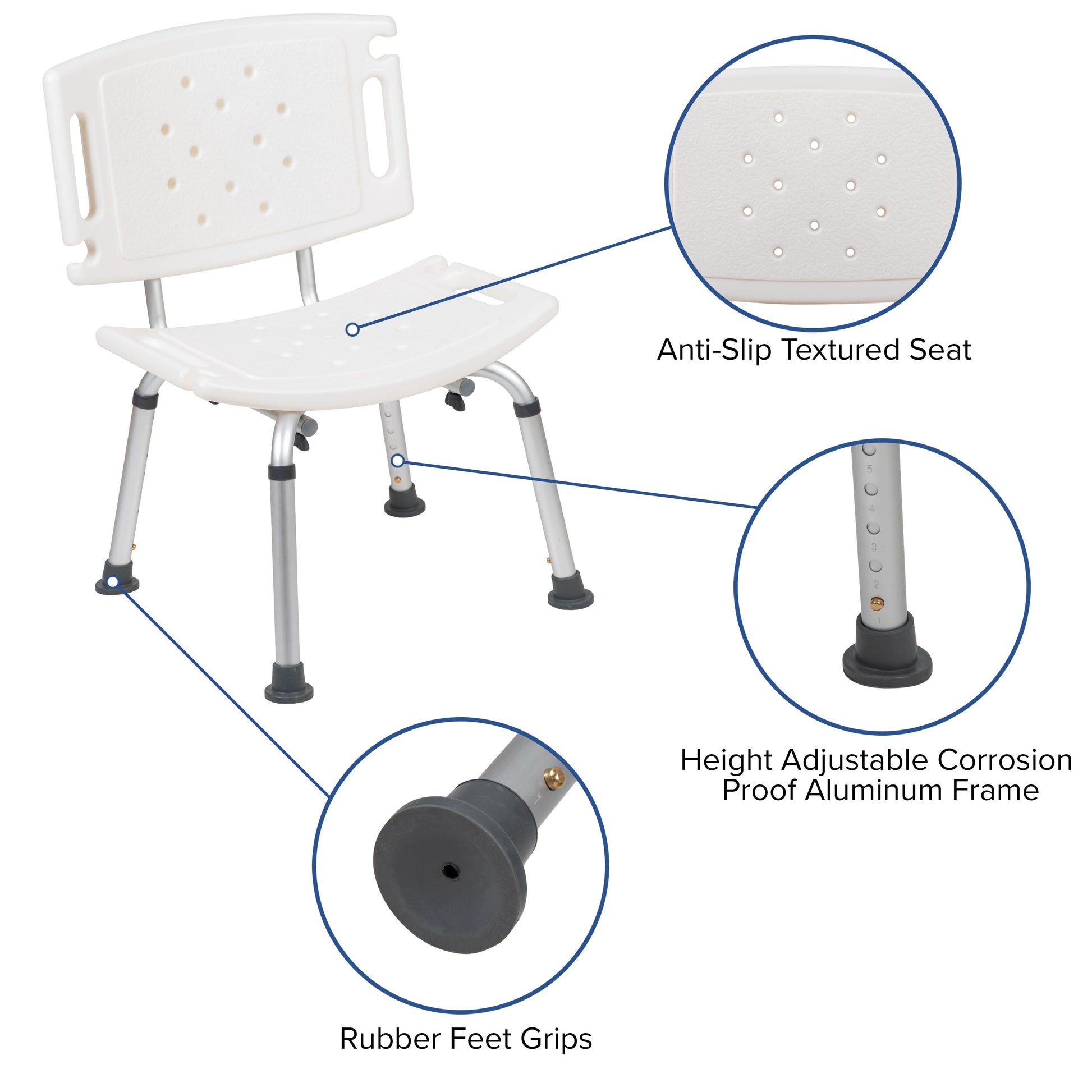 HERCULES Series Tool-Free and Quick Assembly, 300 Lb. Capacity, Adjustable White Bath & Shower Chair with Extra Large Back Dimensions: 19"W x 20.75"D x 25.25" - 32.25"H