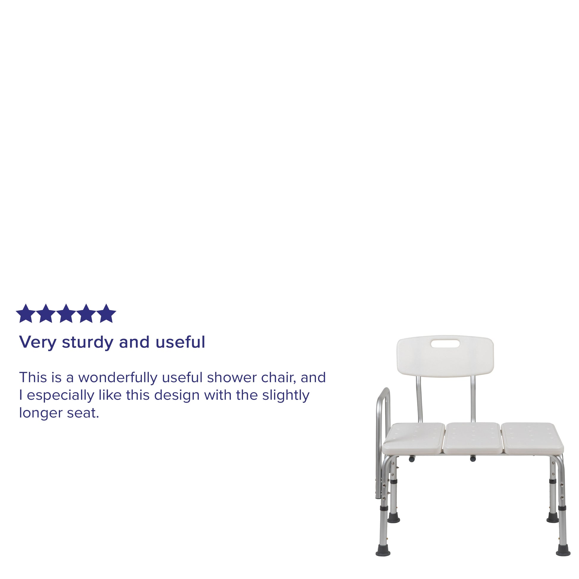 HERCULES Series 300 Lb. Capacity Adjustable White Bath & Shower Transfer Bench with Back and Side Arm Dimensions: 30"W x 20.5"D x 31.25" - 35.5"H