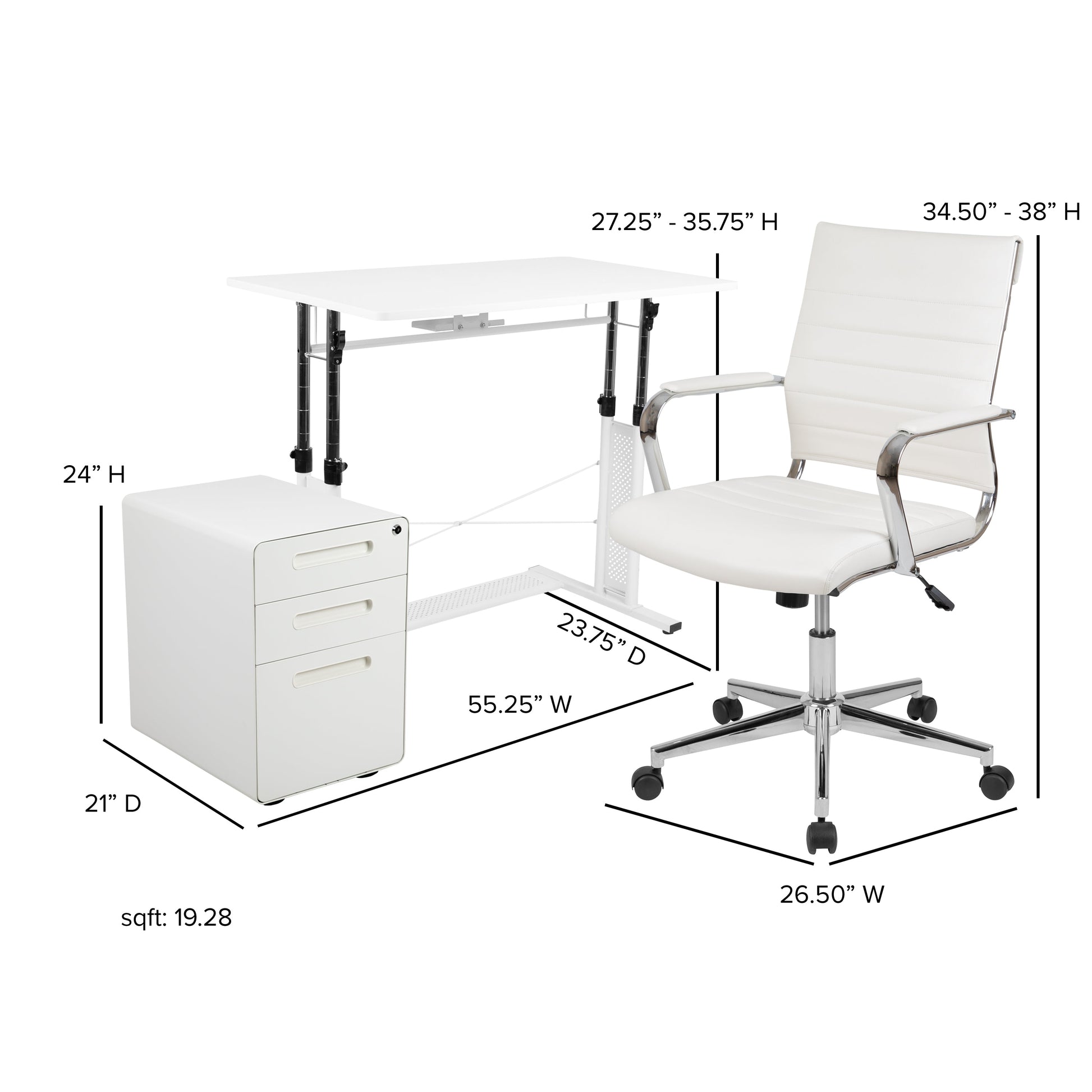 Stiles Work From Home Kit - White Adjustable Computer Desk, LeatherSoft Office Chair and Inset Handle Locking Mobile Filing Cabinet Dimensions: 39.25"W x 23.75"D x 27.25" - 35.75"H
