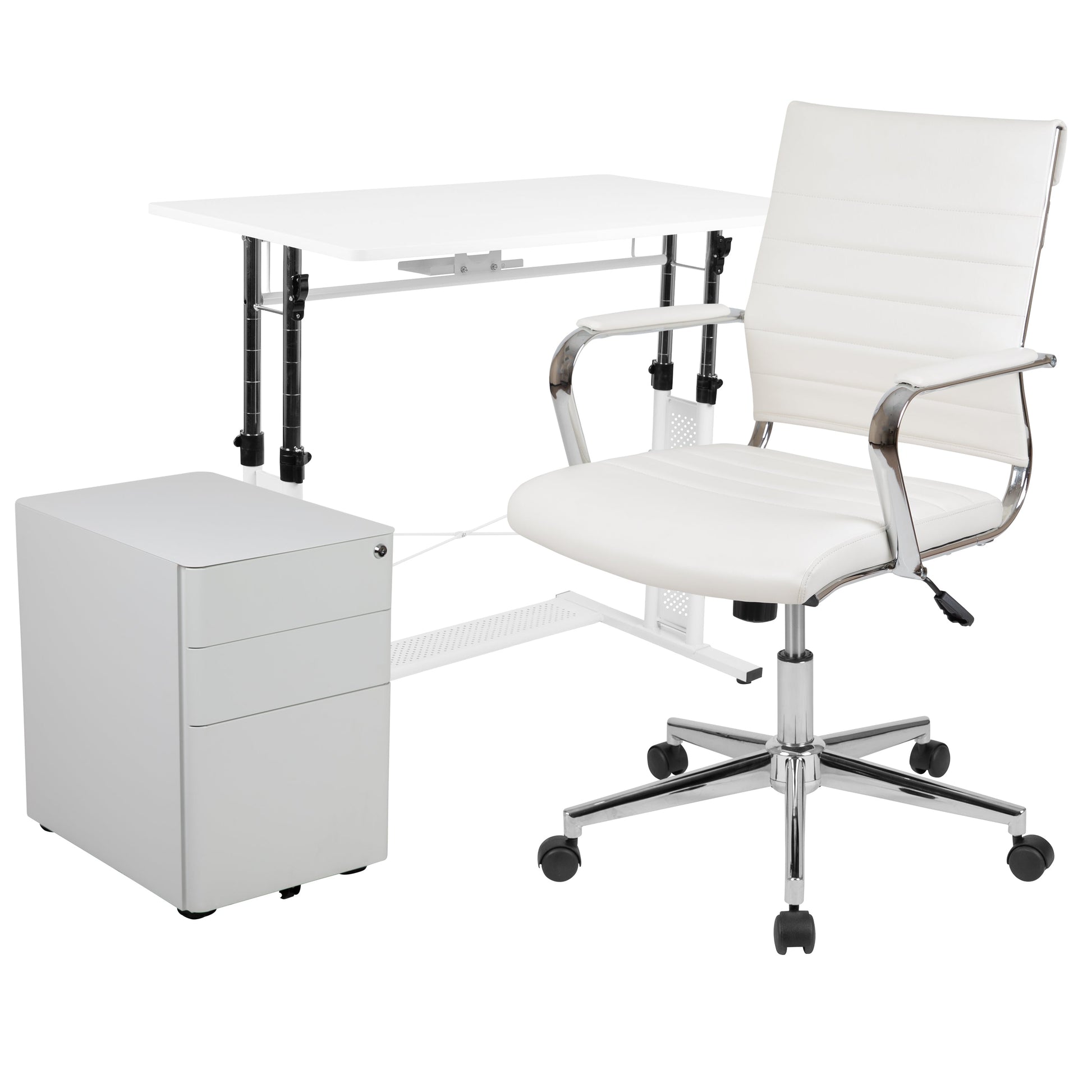 Stiles Work From Home Kit - White Adjustable Computer Desk, LeatherSoft Office Chair and Side Handle Locking Mobile Filing Cabinet Dimensions: 39.25"W x 23.75"D x 27.25" - 35.75"H