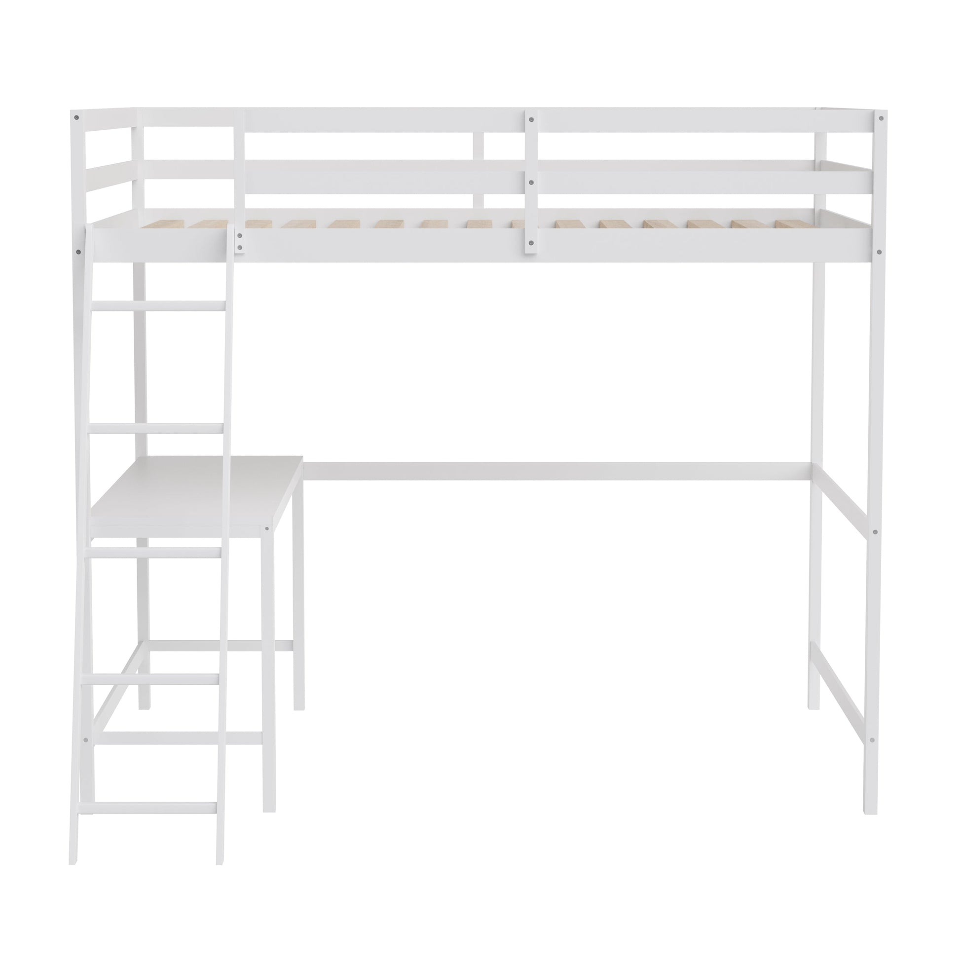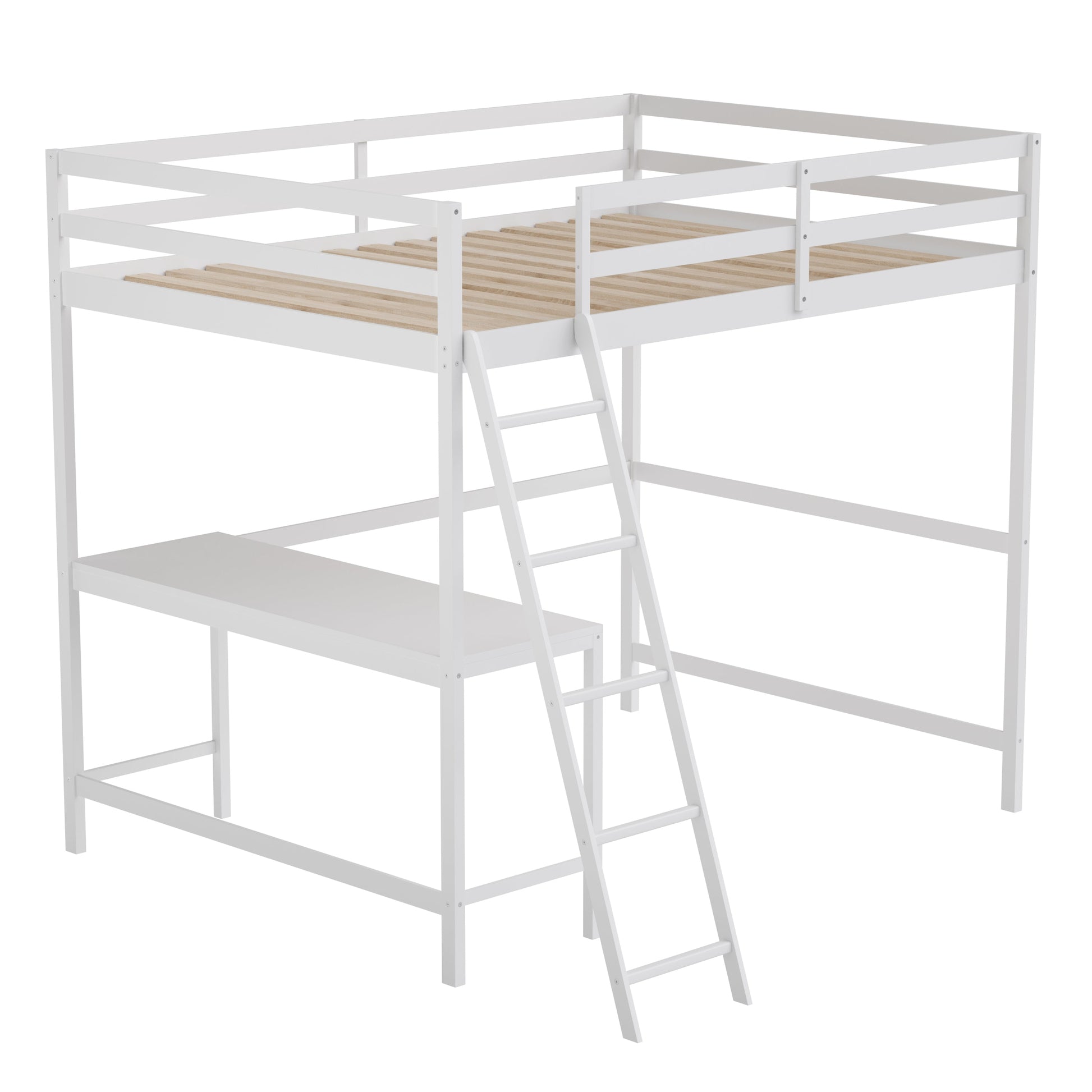 Riley Loft Bed Frame with Desk, Full Size Wooden Bed Frame with Protective Guard Rails & Ladder for Kids and Teens - White Dimensions: 78.75"W x 57.5"D x 69.25"H