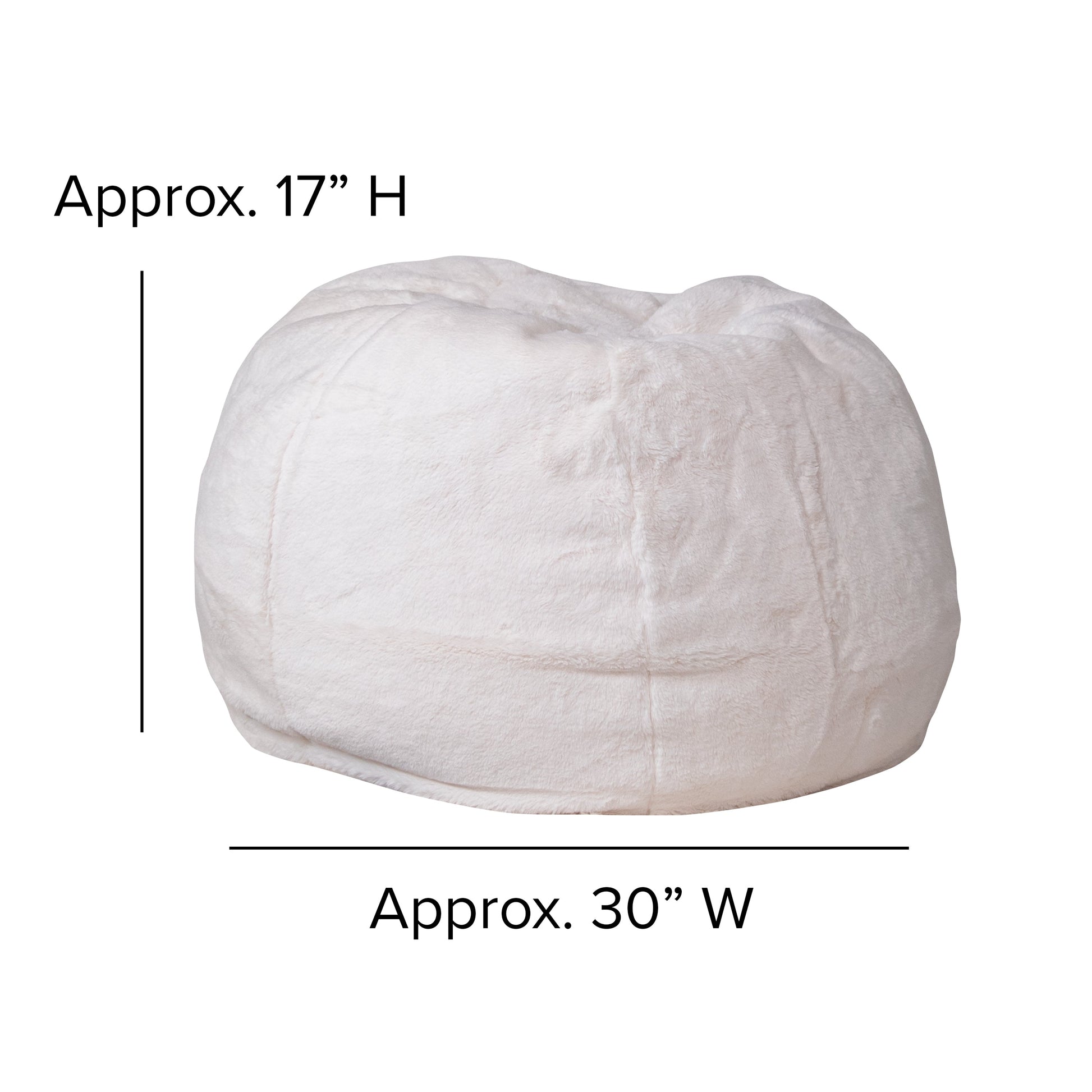 Dillon Small White Furry Refillable Bean Bag Chair for Kids and Teens Dimensions: 30"W x 30"D x 18"H