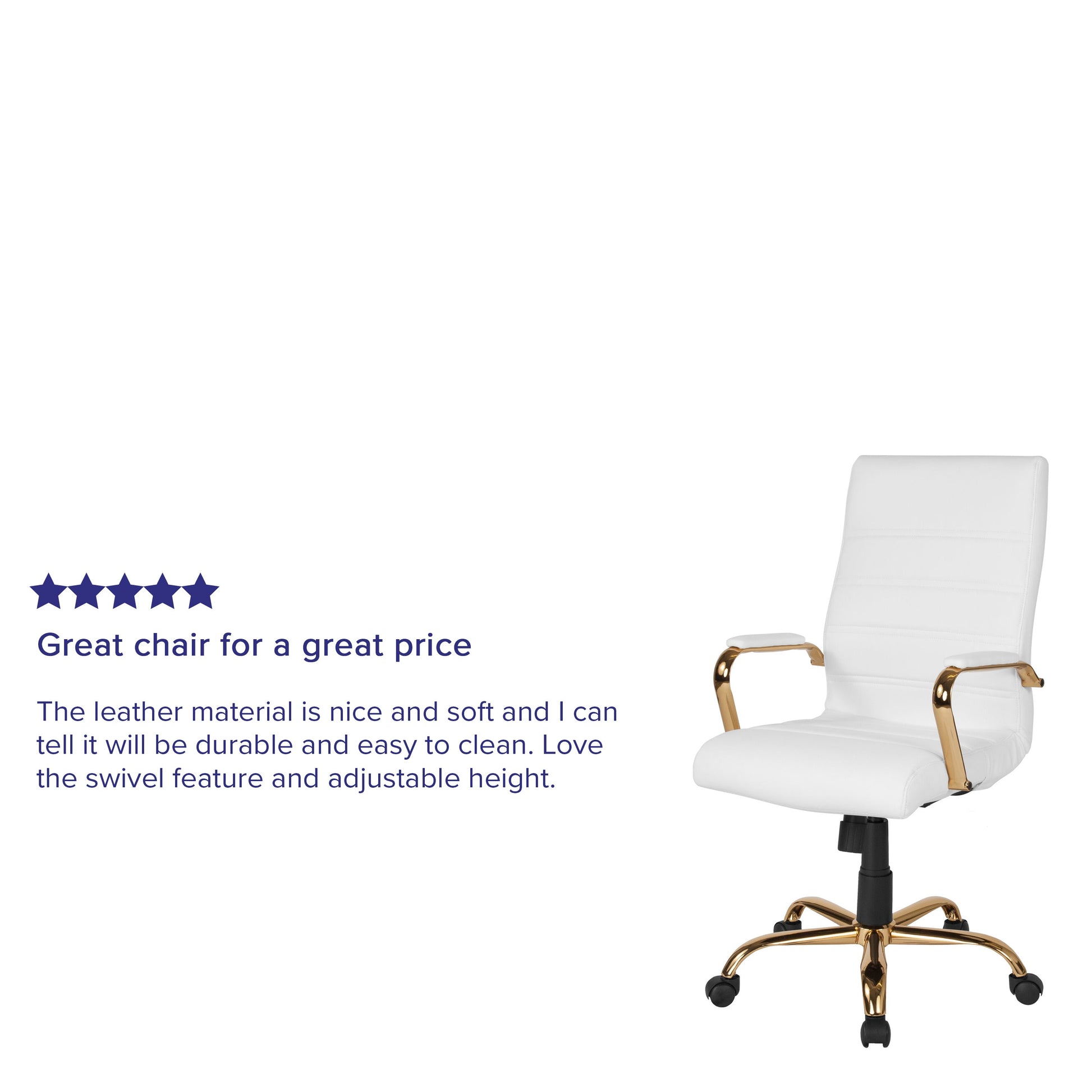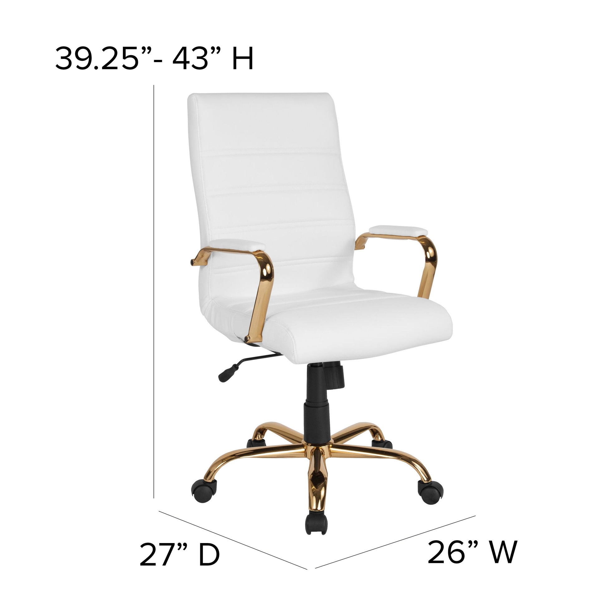 Whitney High Back White LeatherSoft Executive Swivel Office Chair with Gold Frame and Arms Dimensions: 26"W x 27"D x 39.25" - 43"H