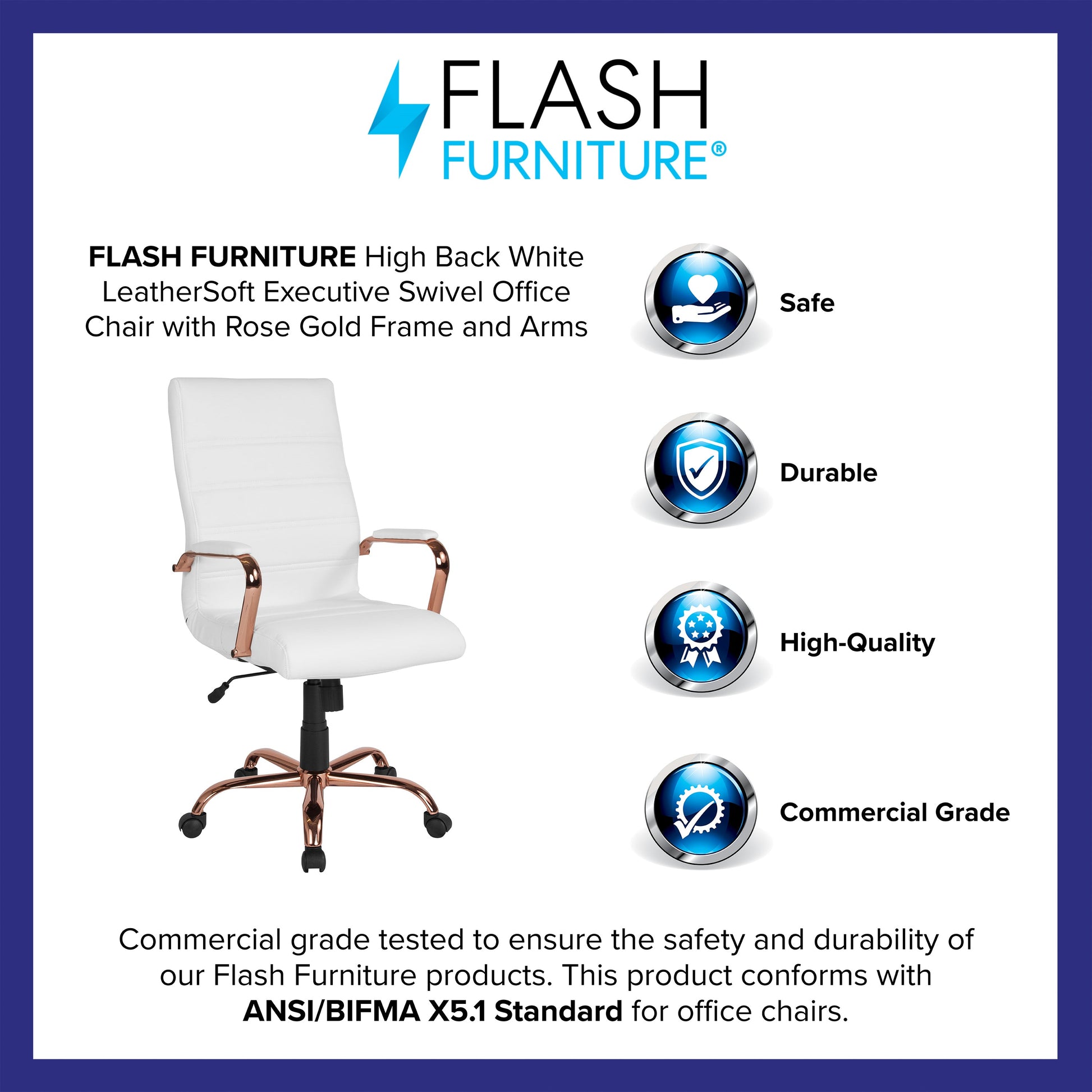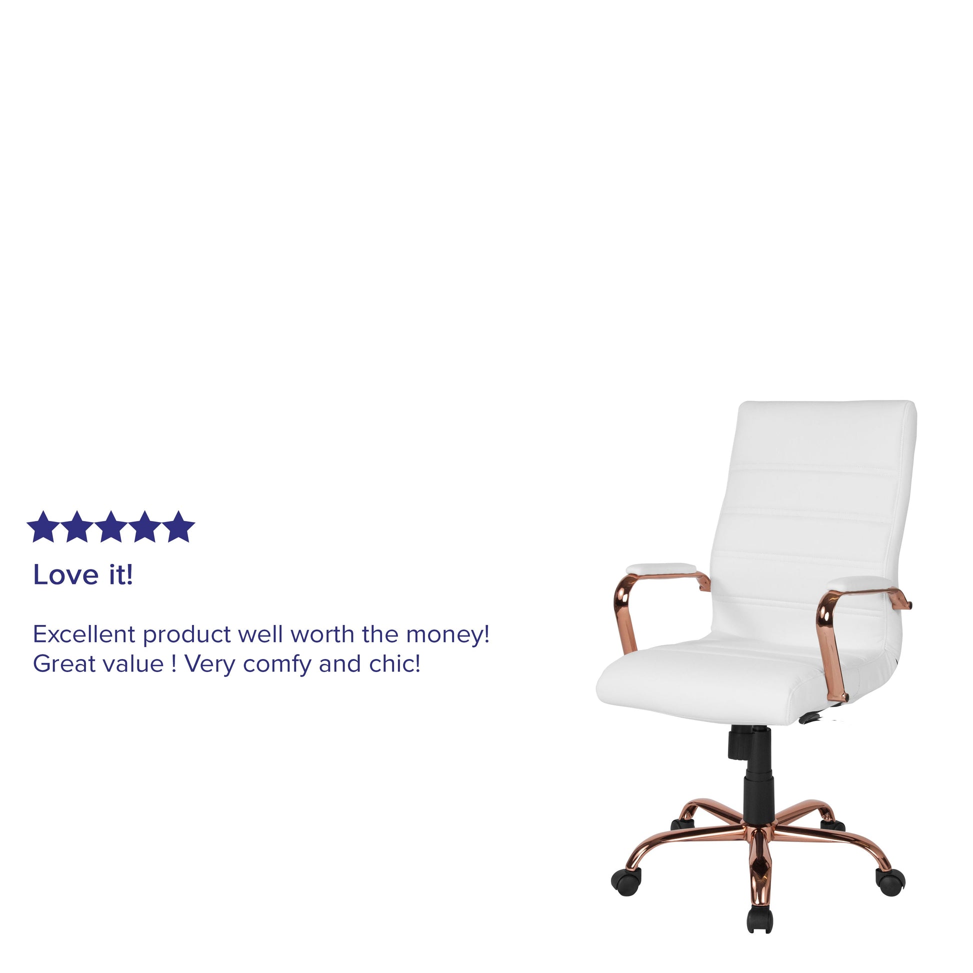 Whitney High Back White LeatherSoft Executive Swivel Office Chair with Rose Gold Frame and Arms Dimensions: 26"W x 27"D x 39.25" - 43"H