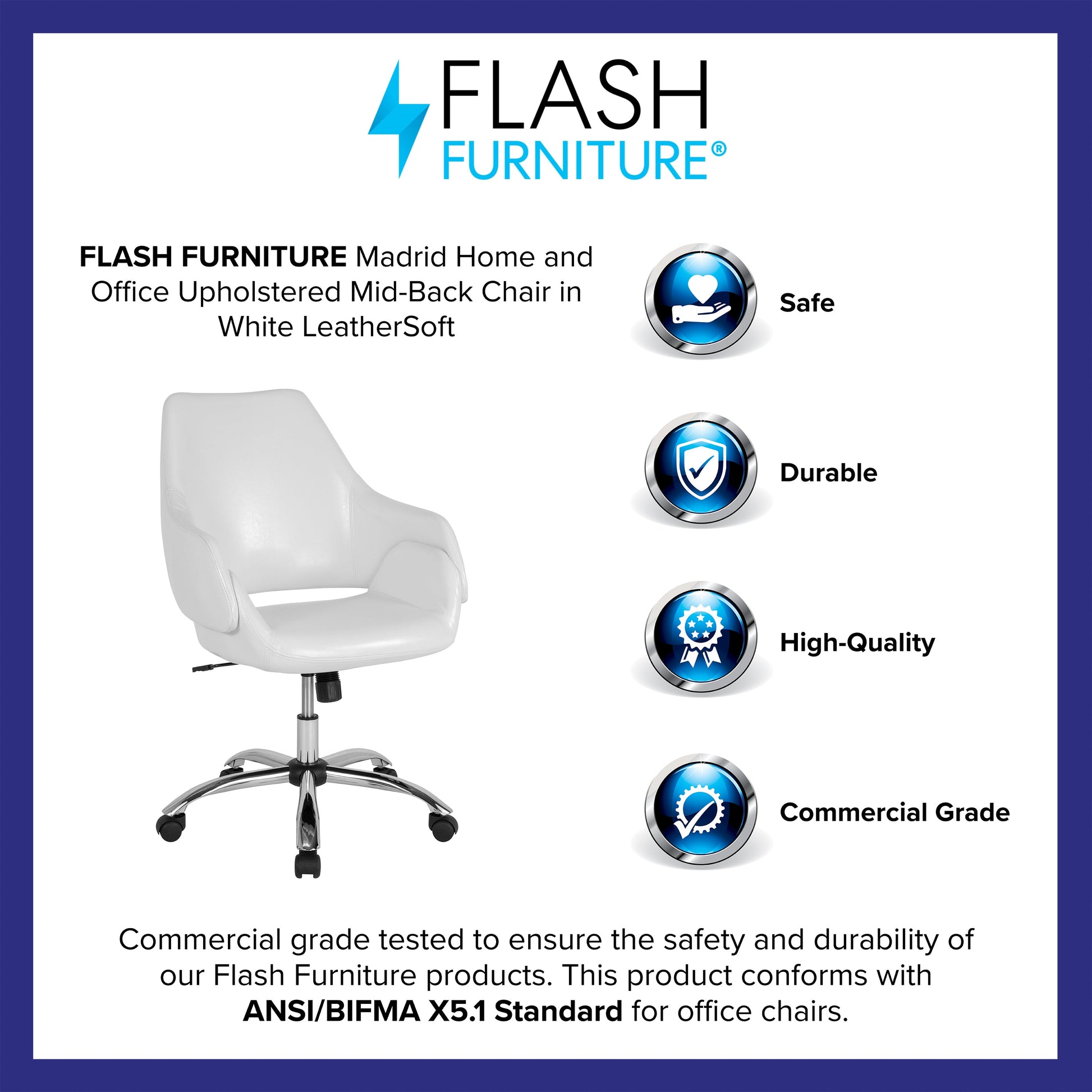 Madrid Home and Office Upholstered Mid-Back Chair in White LeatherSoft Dimensions: 27"W x 27"D x 36.25" - 39.25"H
