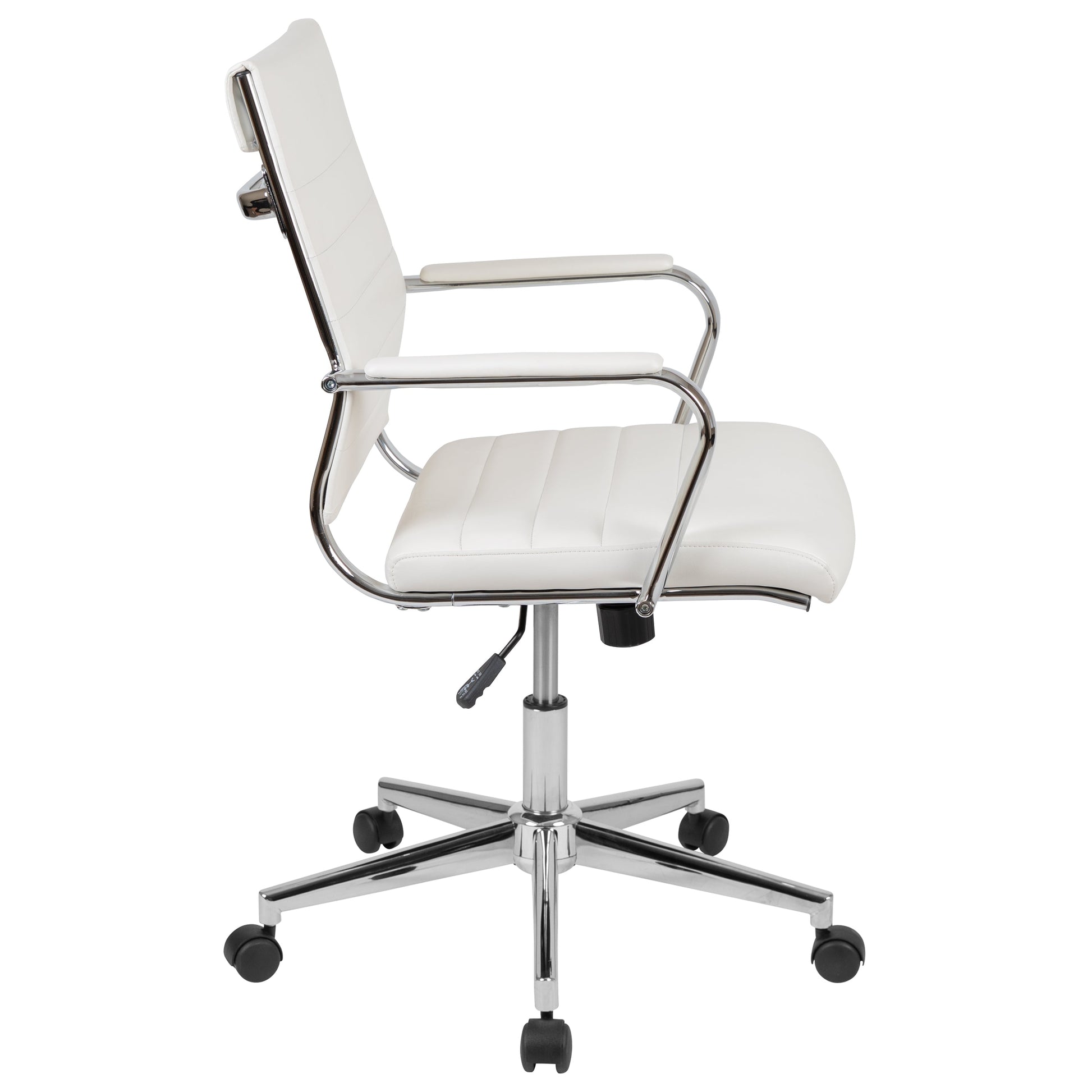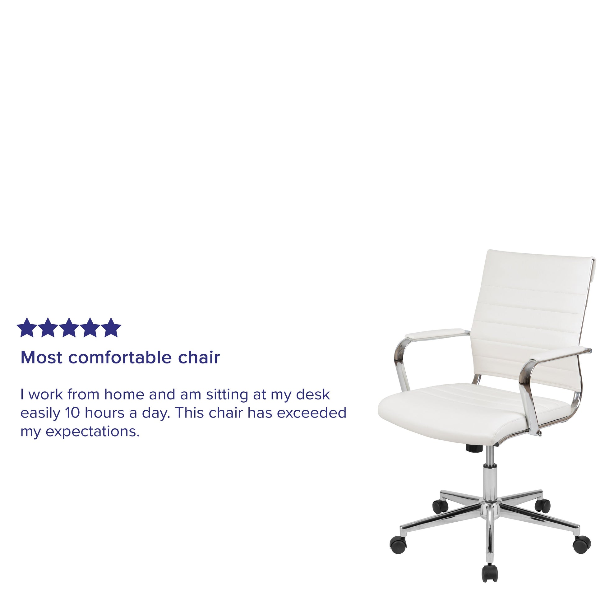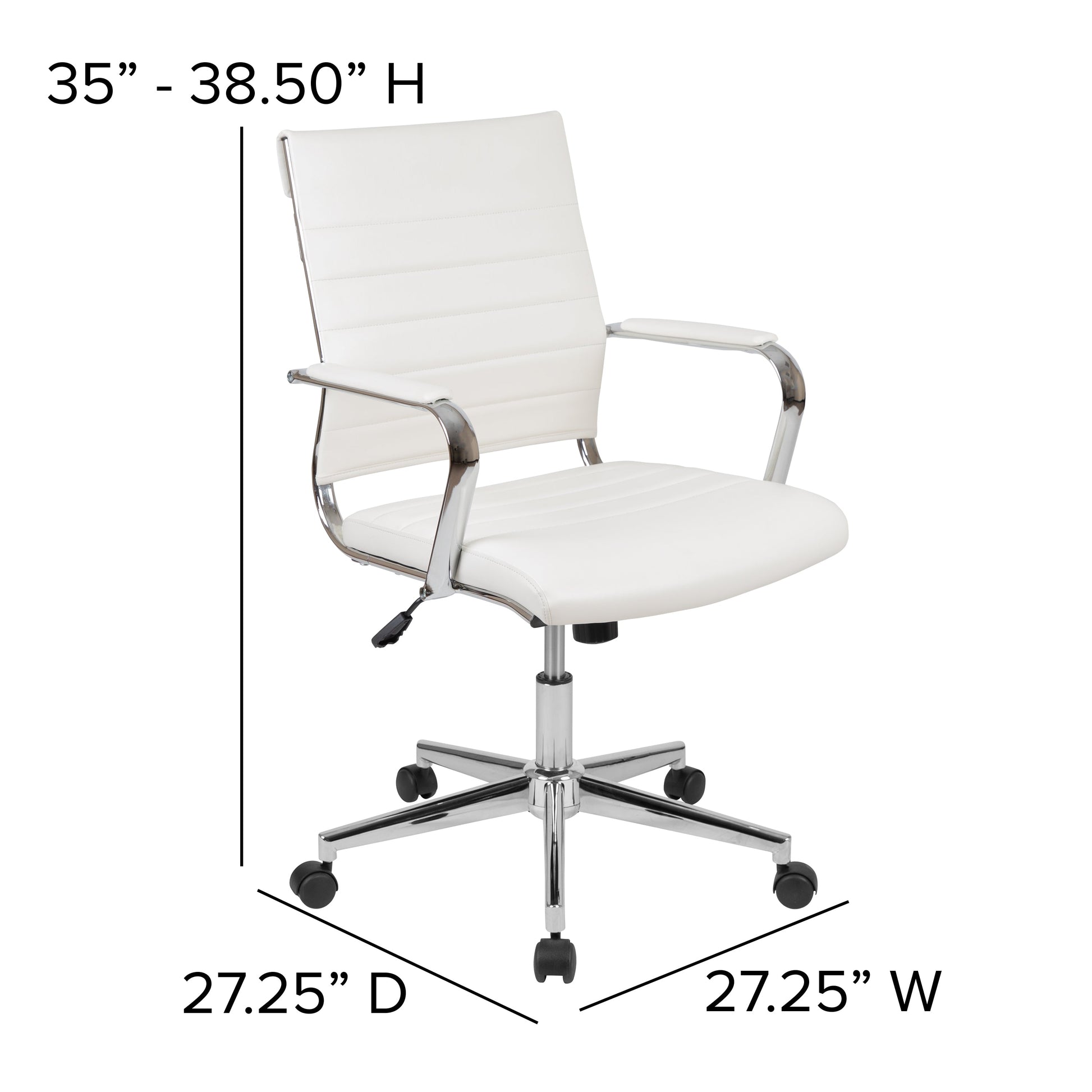 Hansel Mid-Back White LeatherSoft Contemporary Ribbed Executive Swivel Office Chair Dimensions: 27.25"W x 27.25"D x 35" - 38.5"H