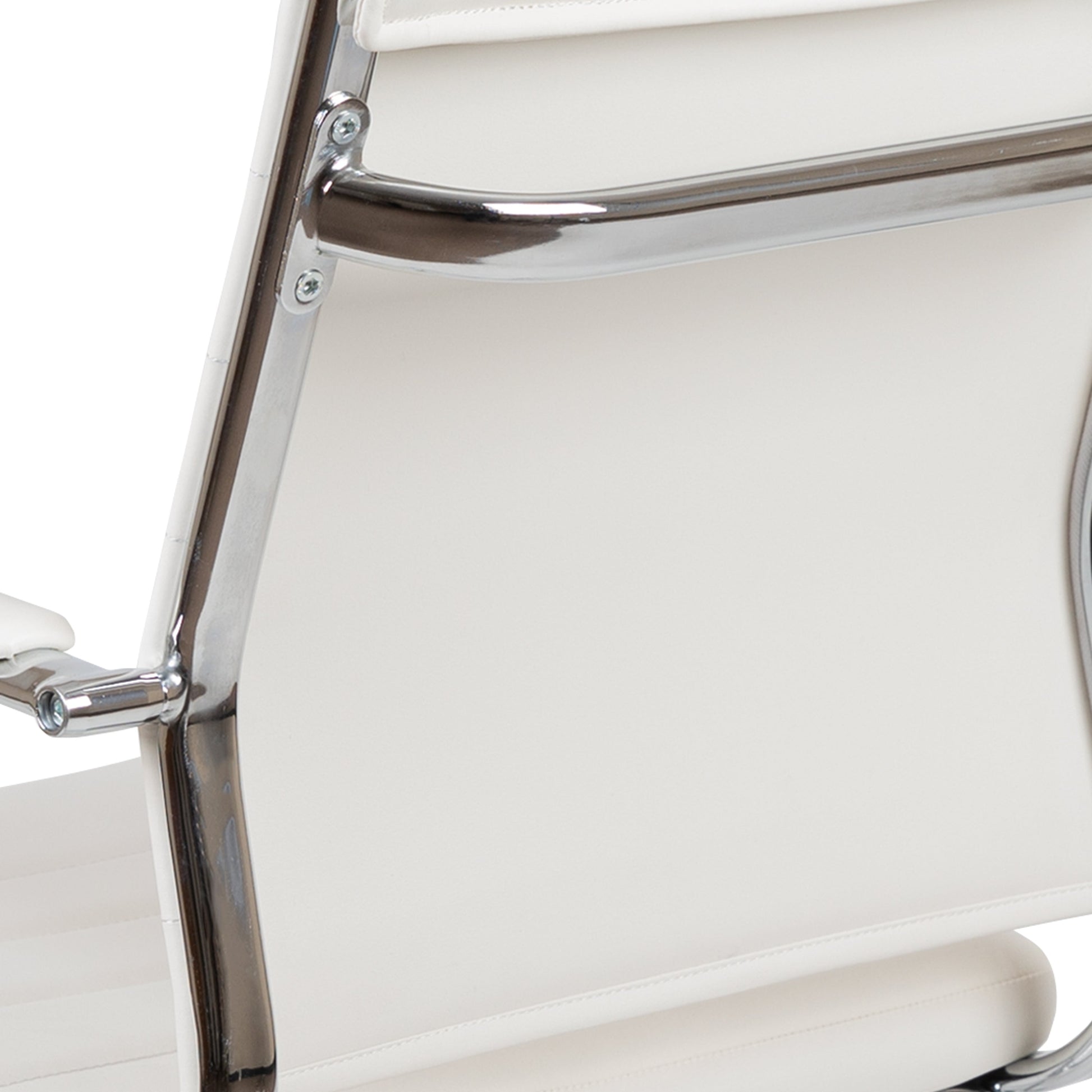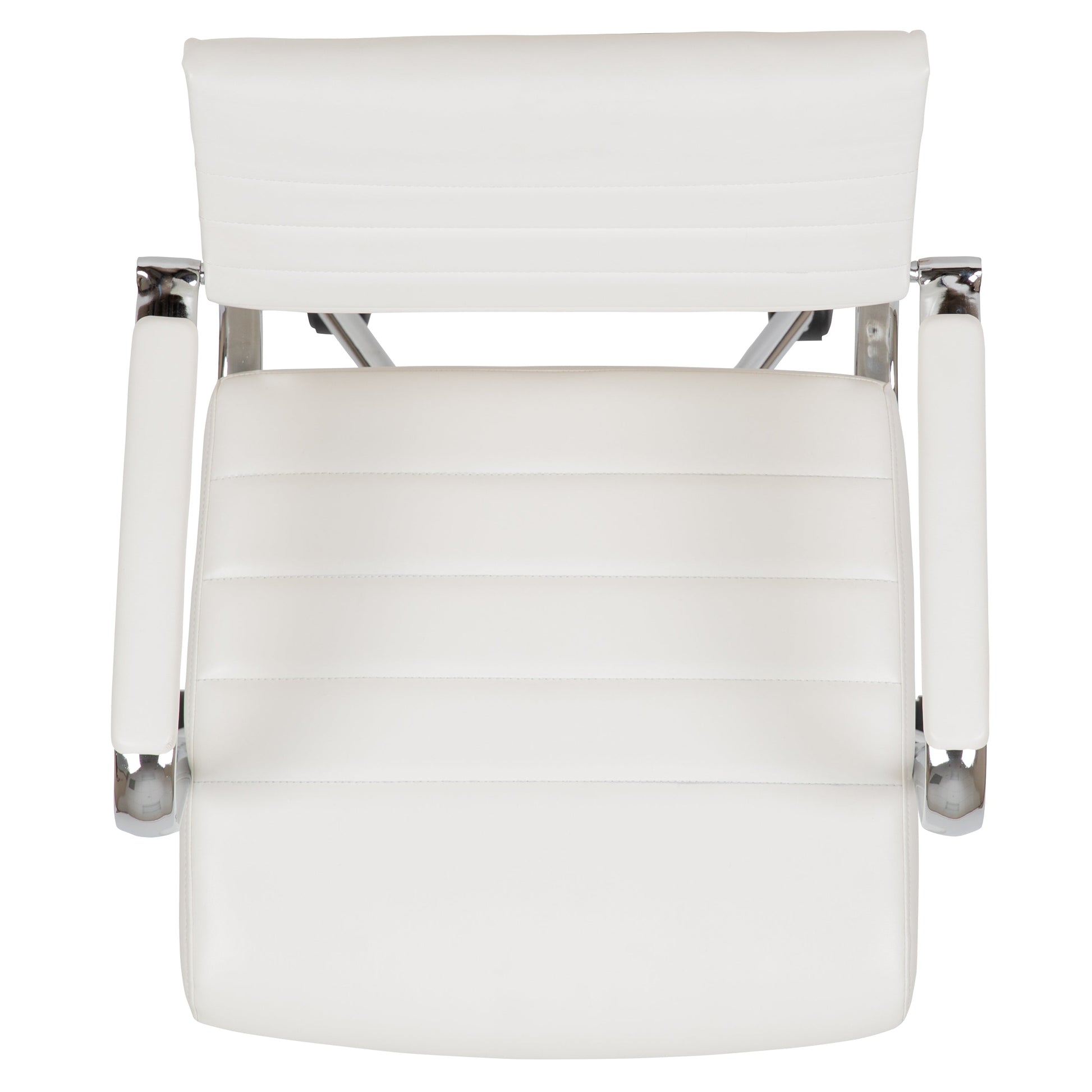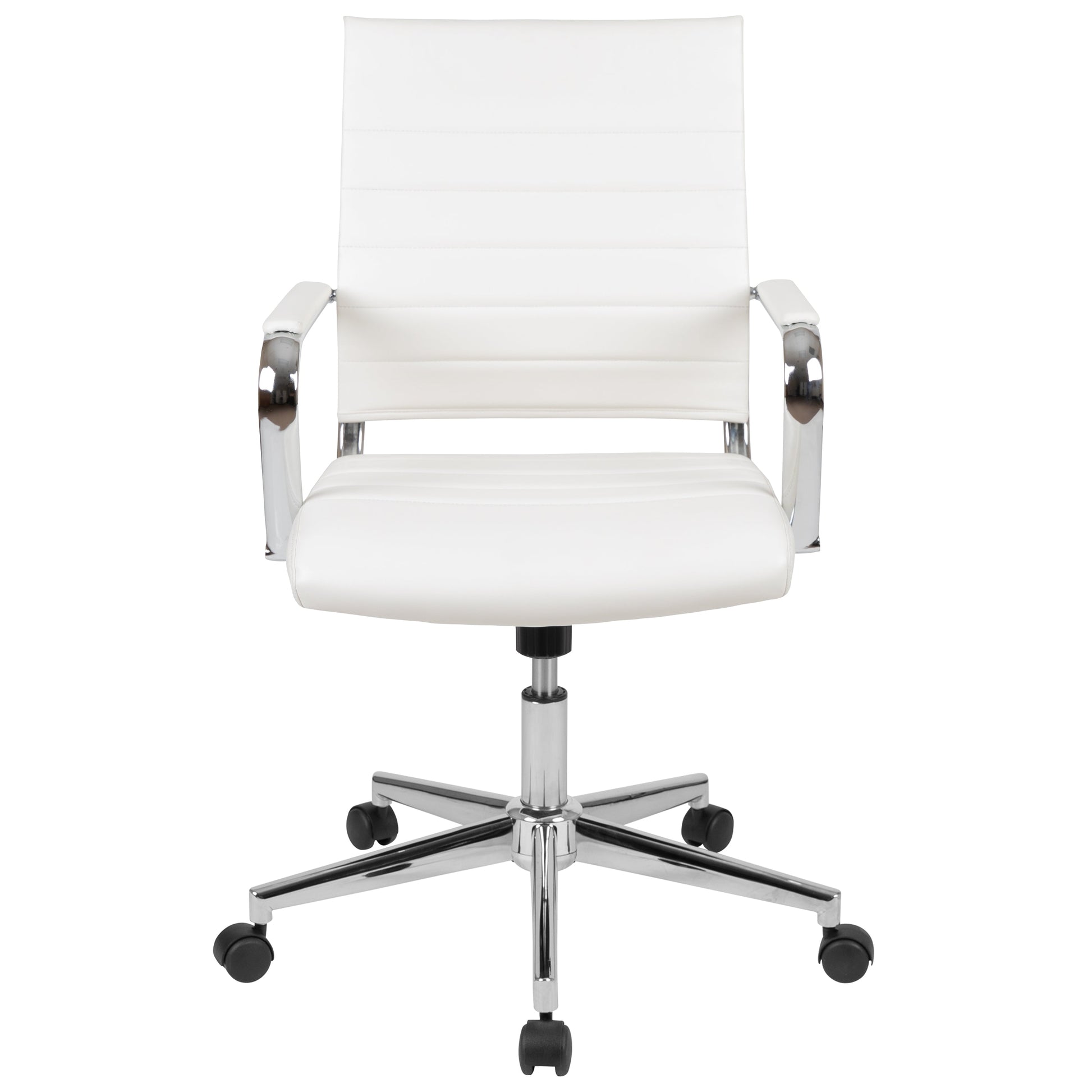 Hansel Mid-Back White LeatherSoft Contemporary Ribbed Executive Swivel Office Chair Dimensions: 27.25"W x 27.25"D x 35" - 38.5"H