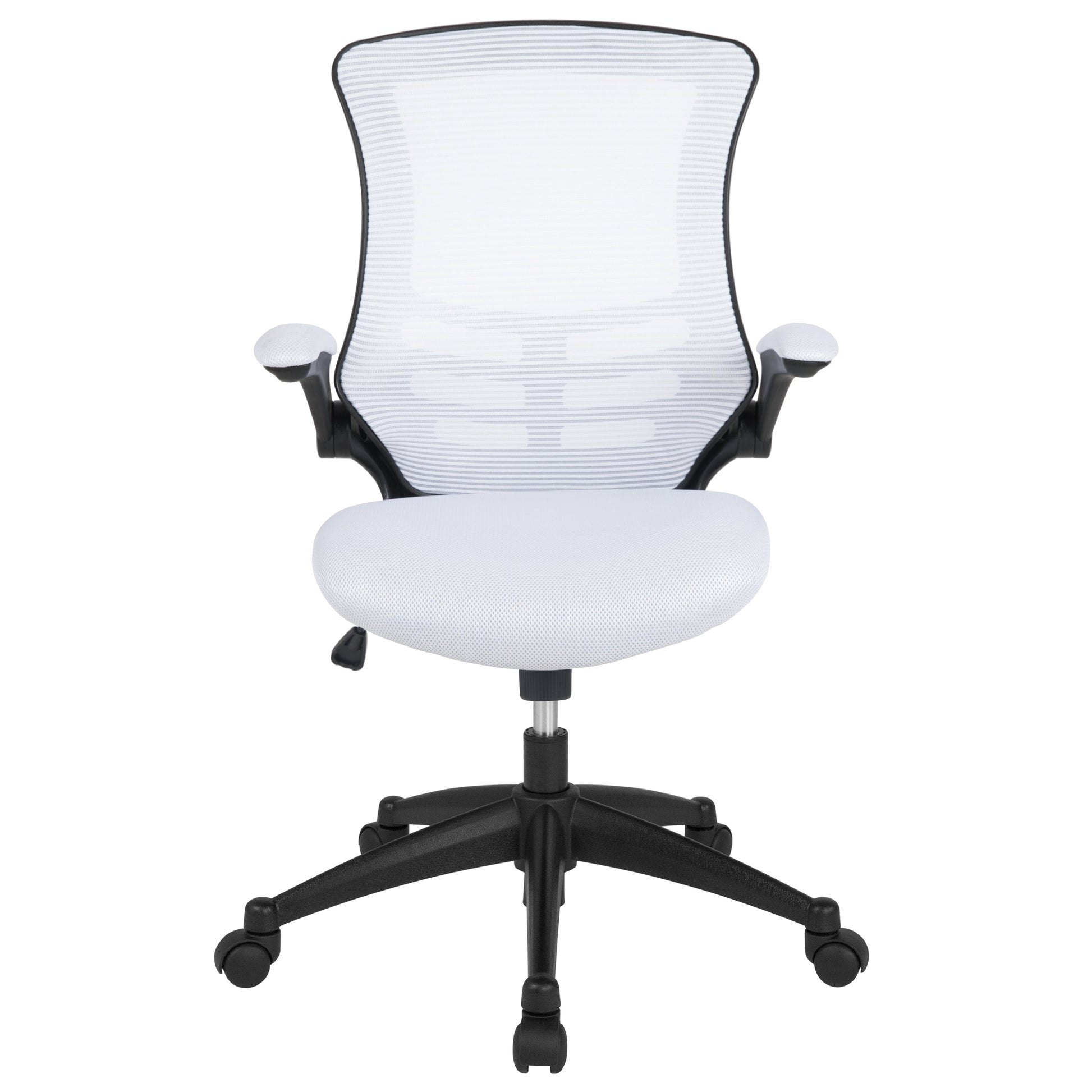 Kelista Mid-Back White Mesh Swivel Ergonomic Task Office Chair with Flip-Up Arms Dimensions: 24.5"W x 25.5"D x 37.5" - 41.25"H