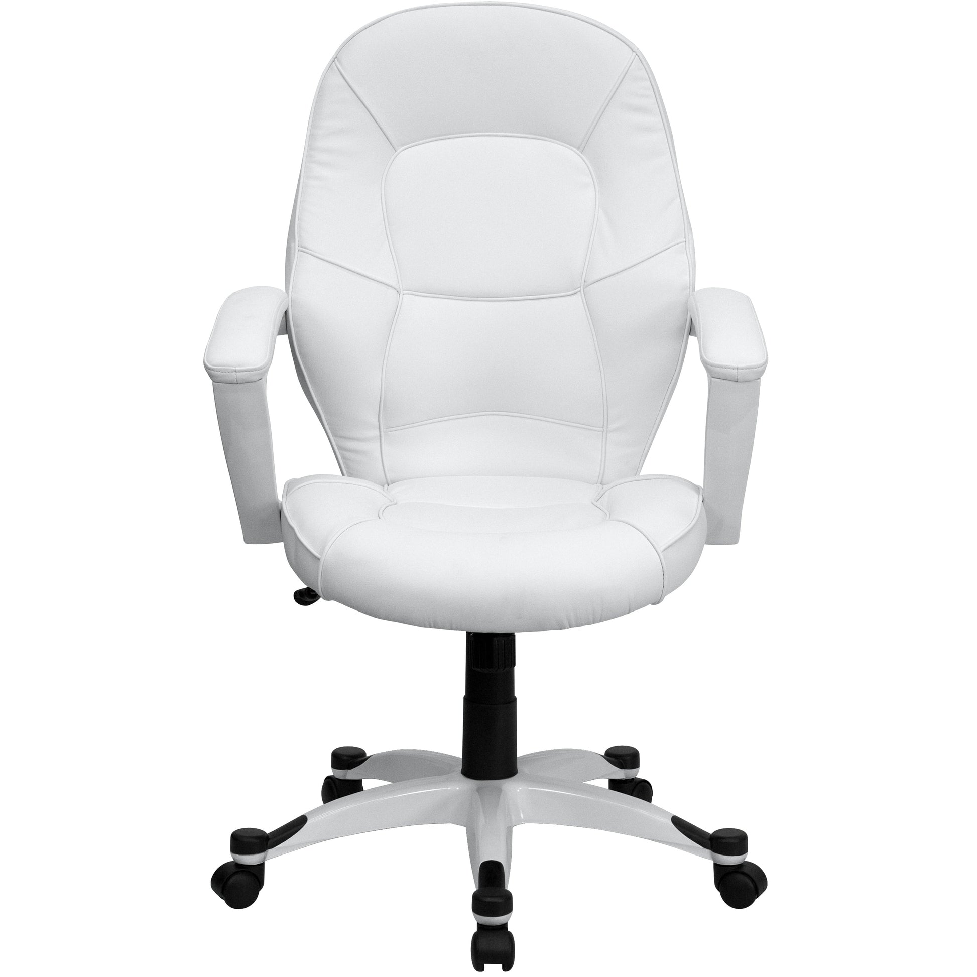 Quincey Mid-Back White LeatherSoft Tapered Back Executive Swivel Office Chair with White Base and Arms Dimensions: 27.25"W x 27.25"D x 42" - 44.25"H