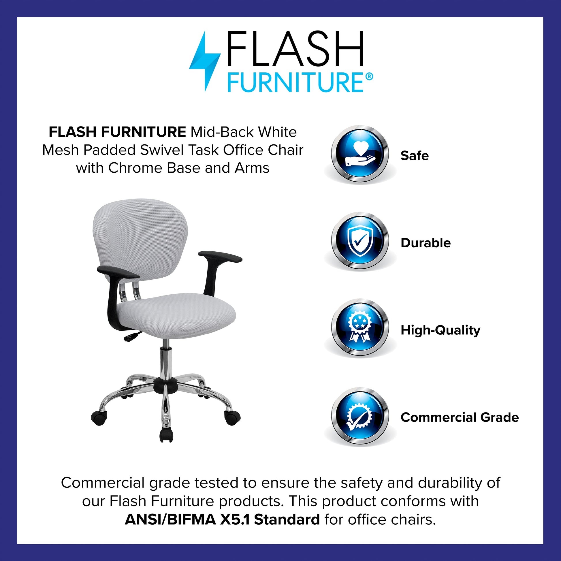 White Mid-Back Task Chair H-2376-F-WHT-ARMS-GG