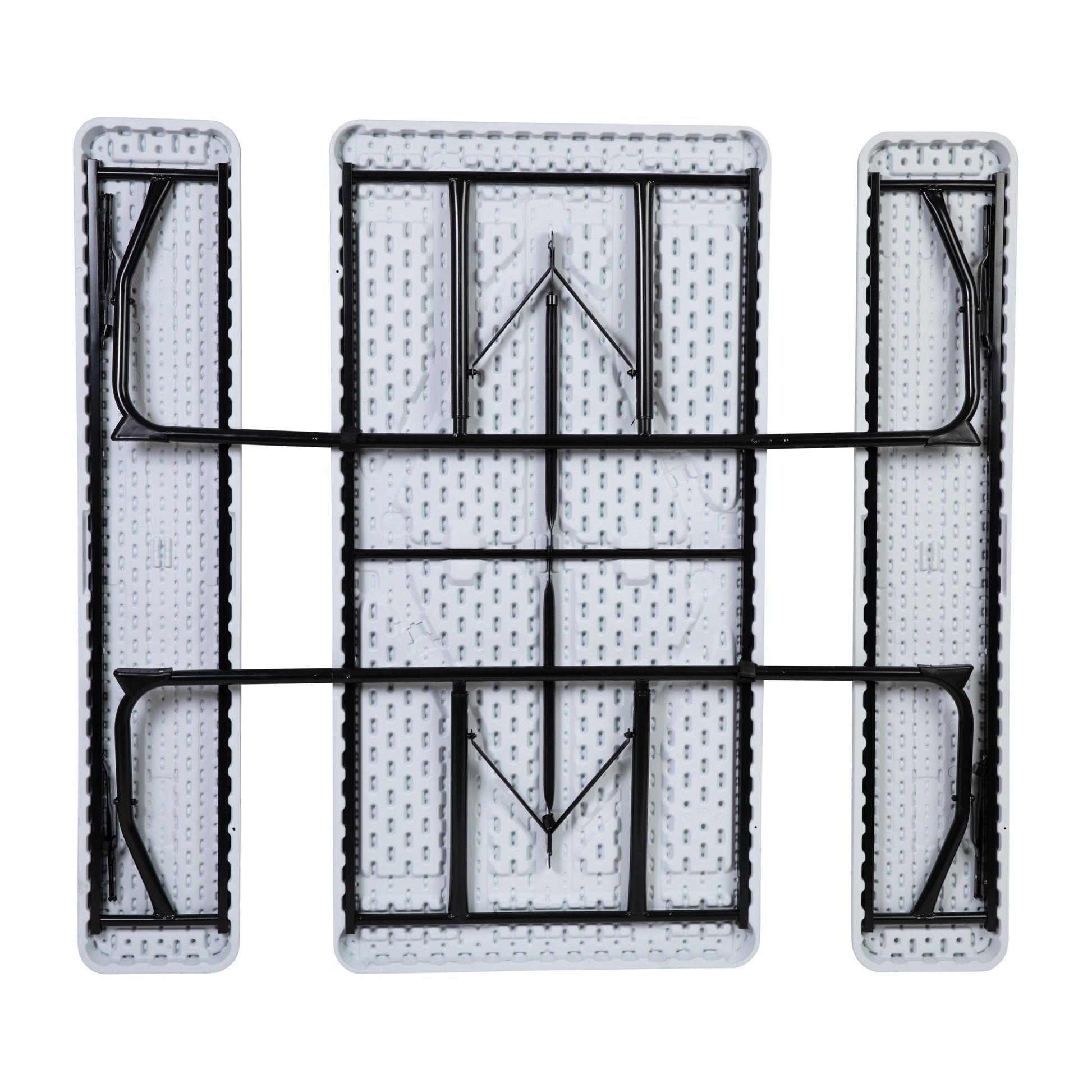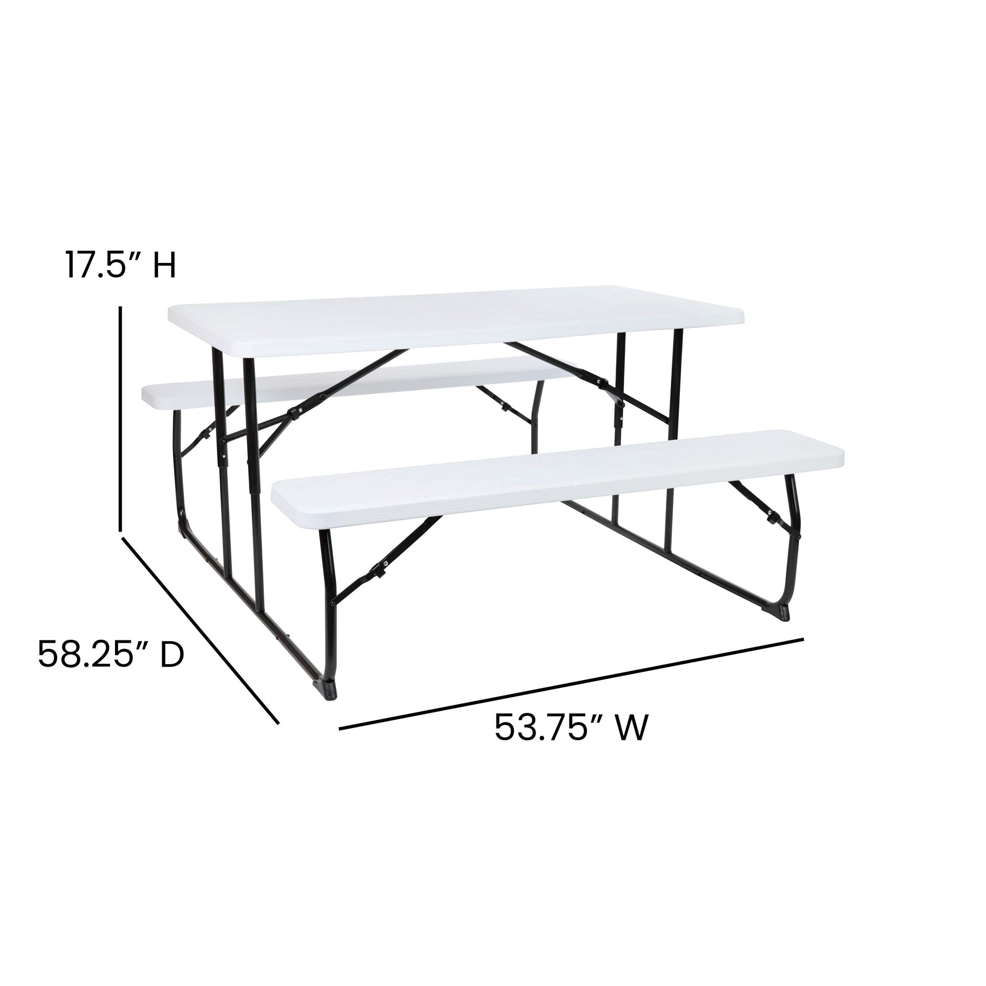 Insta-Fold White Wood Grain Folding Picnic Table and Benches - 4.5 Foot Folding Table Dimensions: 53.75"W x 58.25"D x 17.5" - 28.25"H