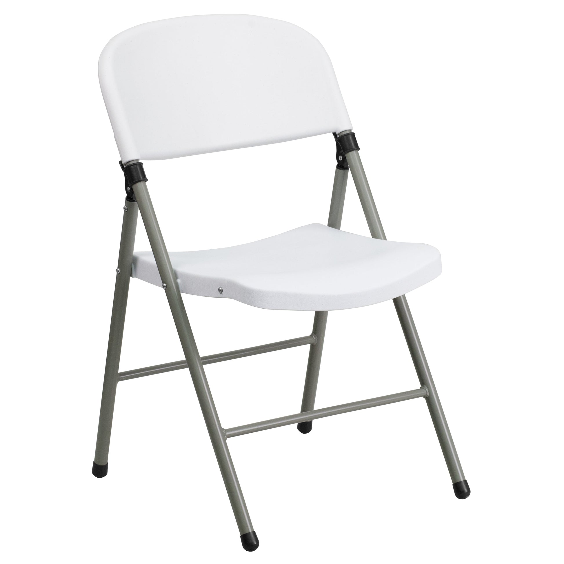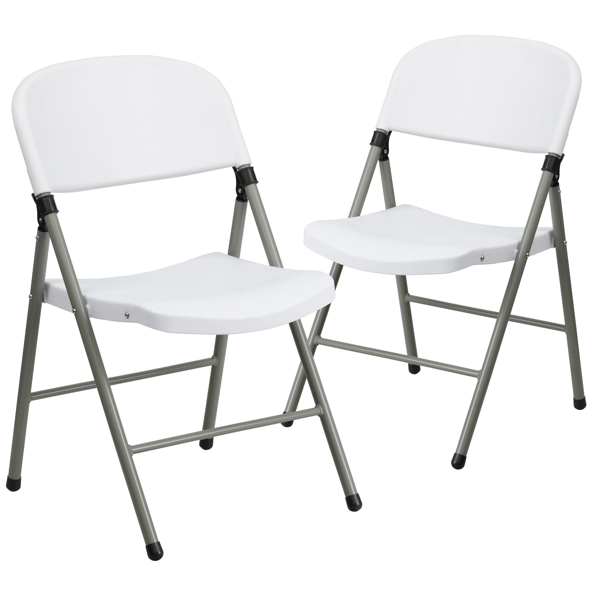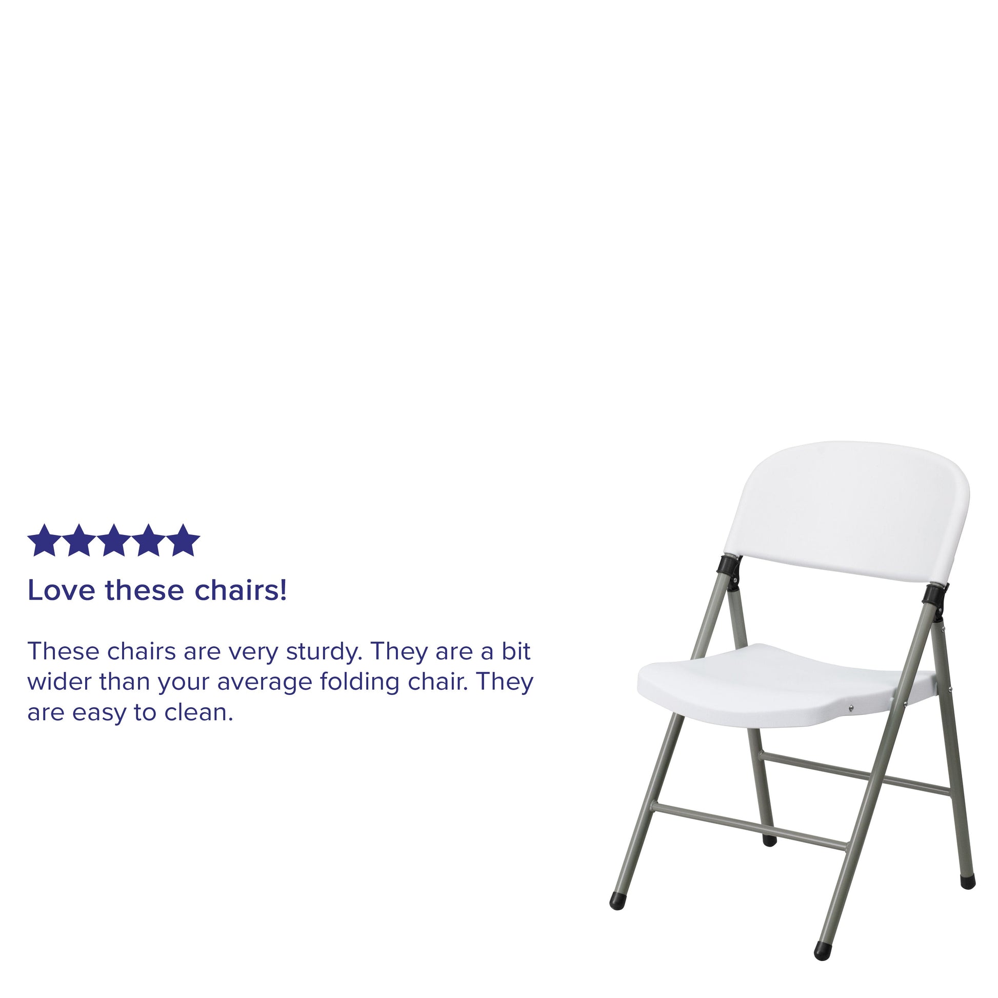 HERCULES Series White Plastic Folding Chairs | Set of 2 Lightweight Folding Chairs with Gray Frame Dimensions: 19"W x 22"D x 32.75"H