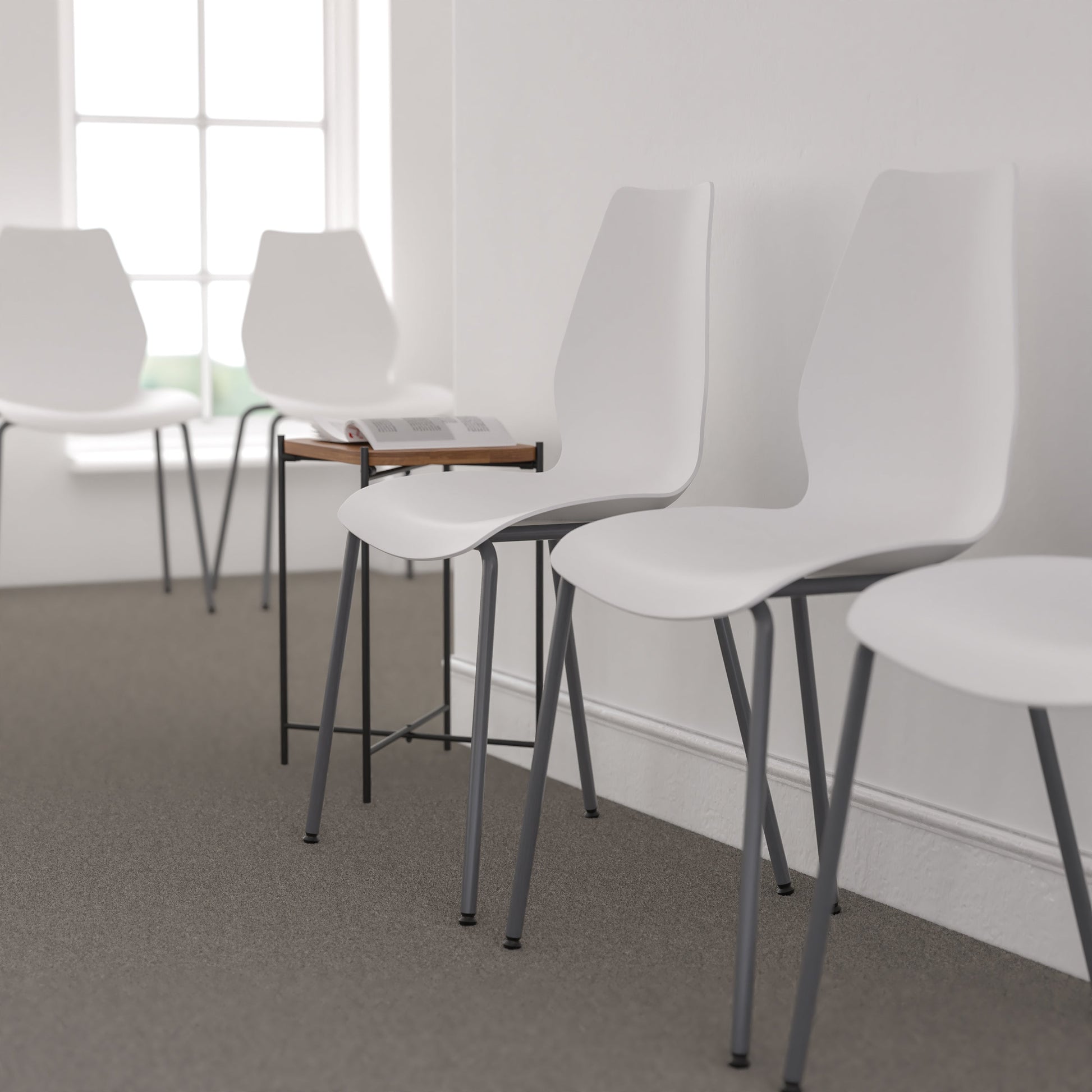 HERCULES Series 770 lb. Capacity White Stack Chair with Lumbar Support and Silver Frame Dimensions: 22.5"W x 17.75"D x 31.5"H
