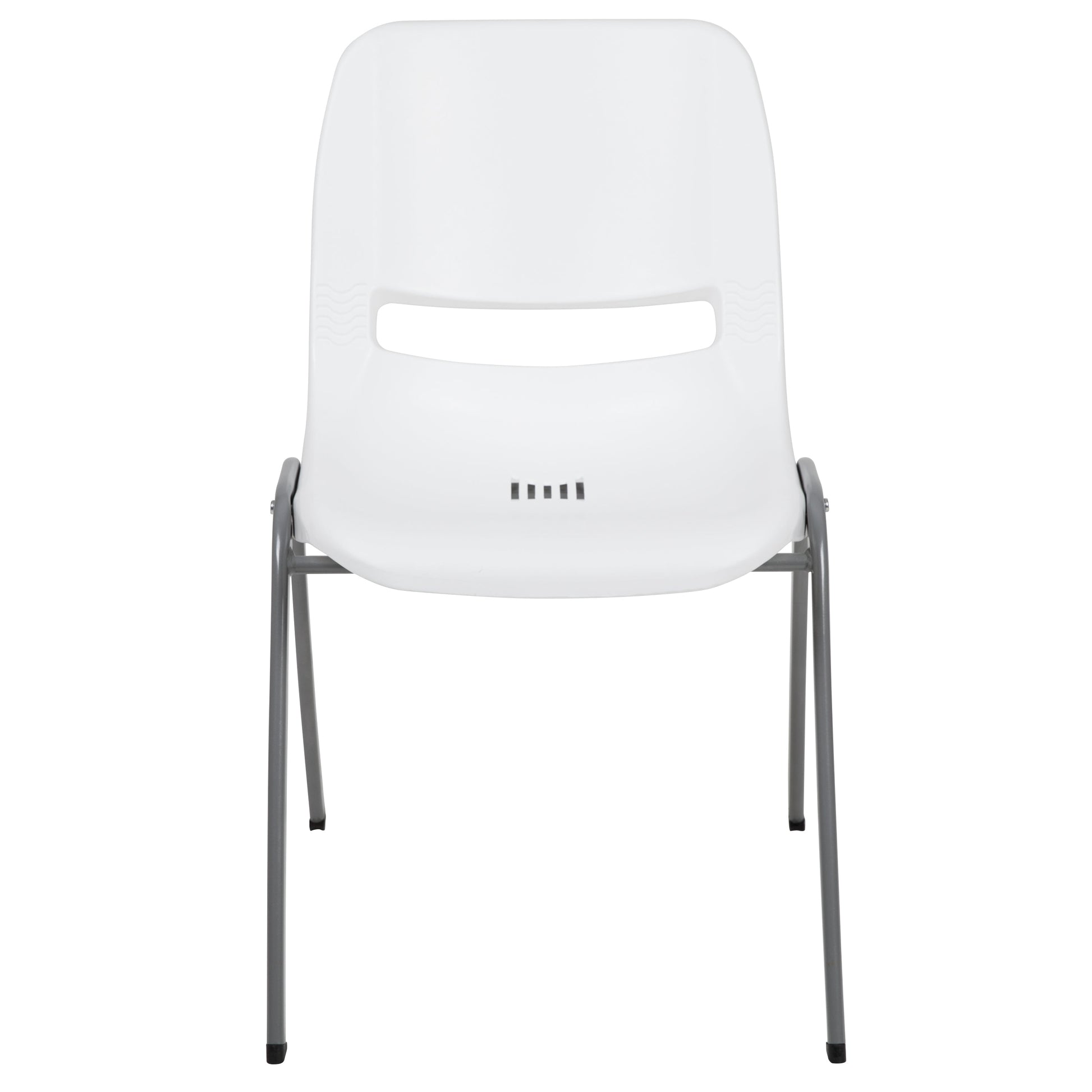 HERCULES Series 880 lb. Capacity White Ergonomic Shell Stack Chair with Gray Frame Dimensions: 19.25"W x 23.5"D x 32"H