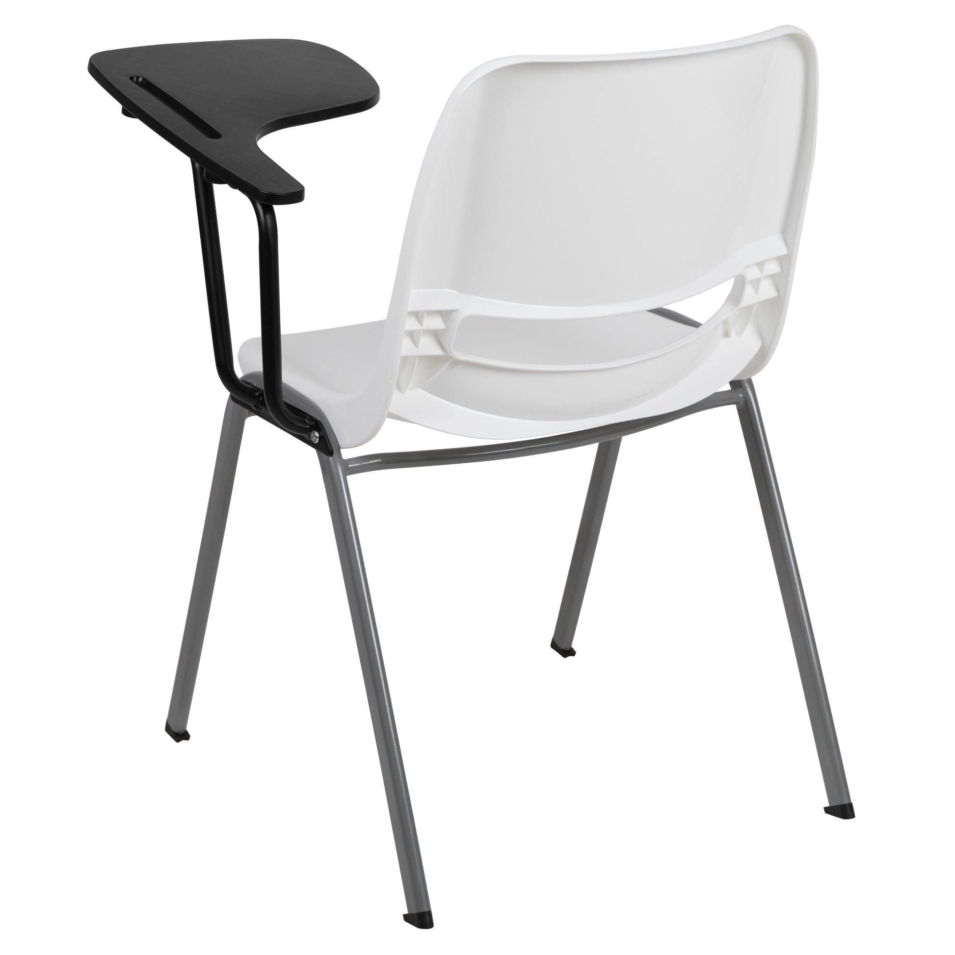 HERCULES White Ergonomic Shell Chair with Left Handed Flip-Up Tablet Arm Dimensions: 21"W x 25.5"D x 32"H