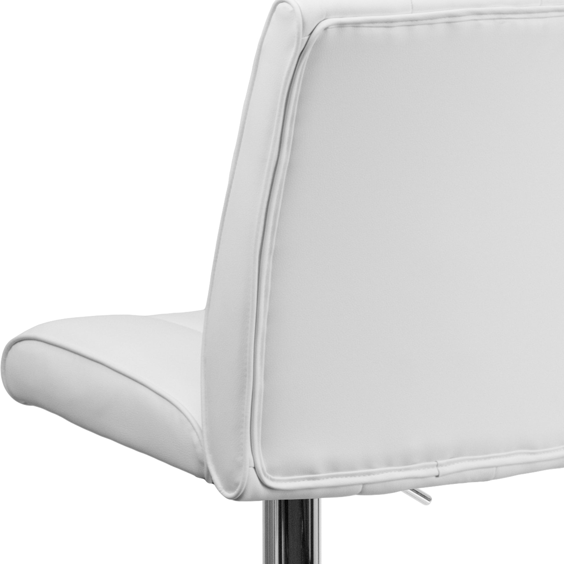 Charles Contemporary White Vinyl Adjustable Height Barstool with Vertical Stitch Panel Back and Chrome Base Dimensions: 16.25"W x 18.75"D x 38.75" - 47.25"H