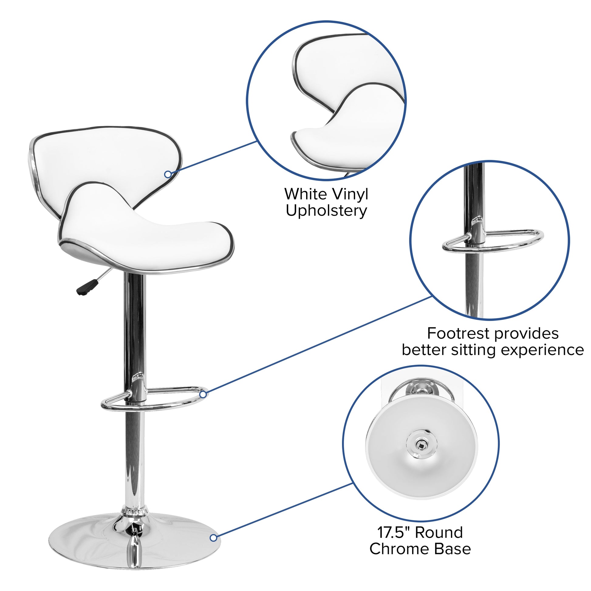Devin Contemporary Cozy Mid-Back White Vinyl Adjustable Height Barstool with Chrome Base Dimensions: 16"W x 17.5"D x 34.5" - 43"H