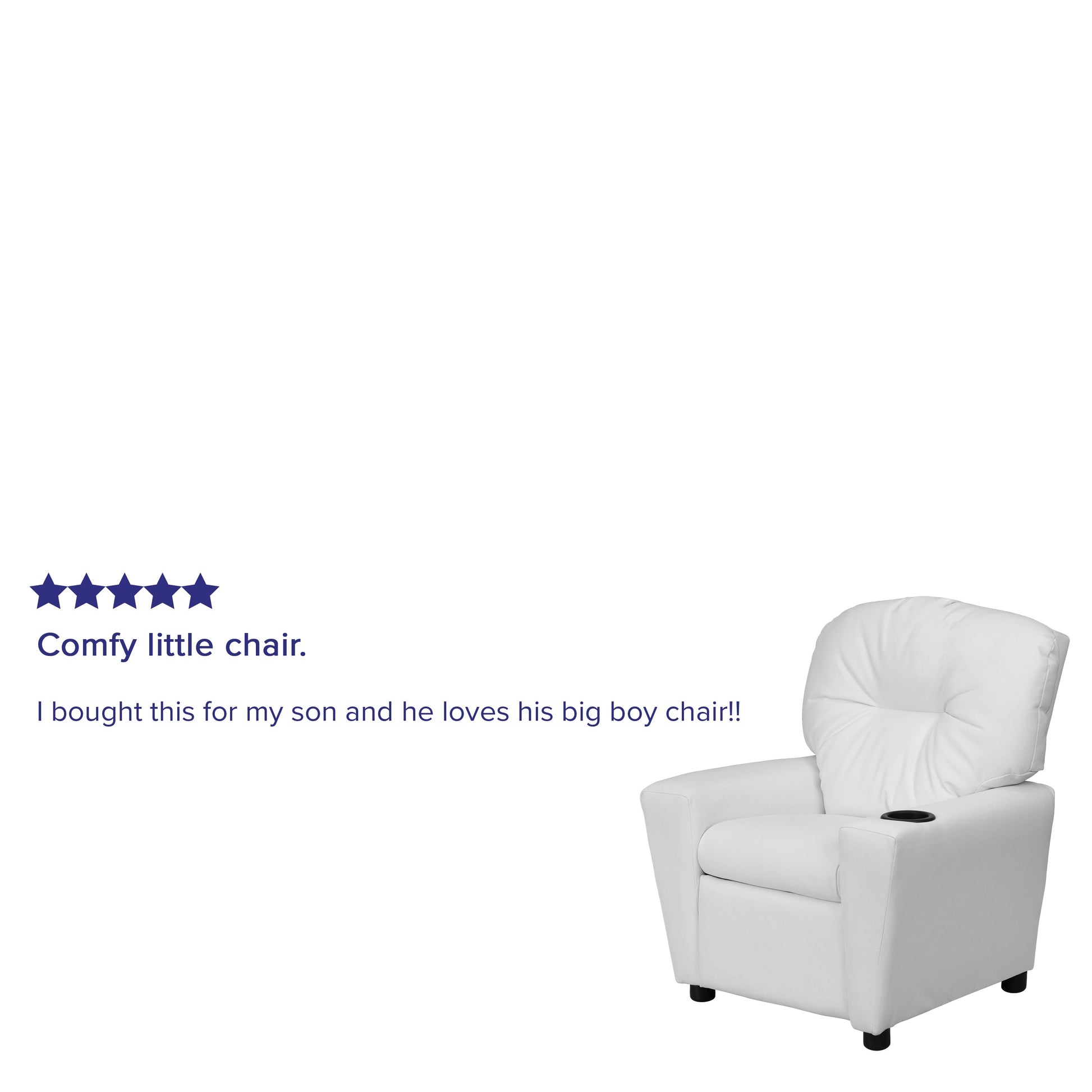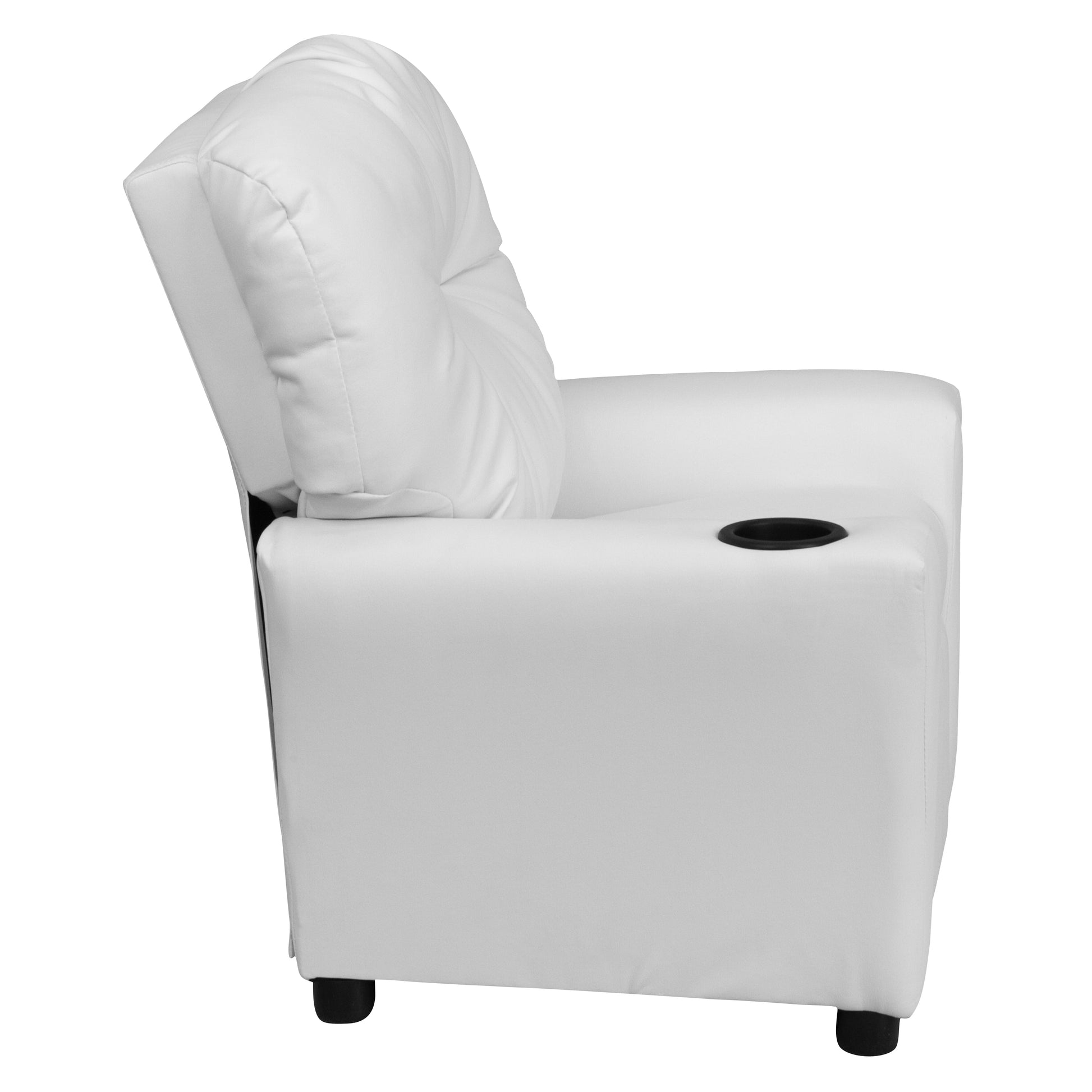 Chandler Contemporary White Vinyl Kids Recliner with Cup Holder Dimensions: 24.5"W x 25" - 39"D x 28"H