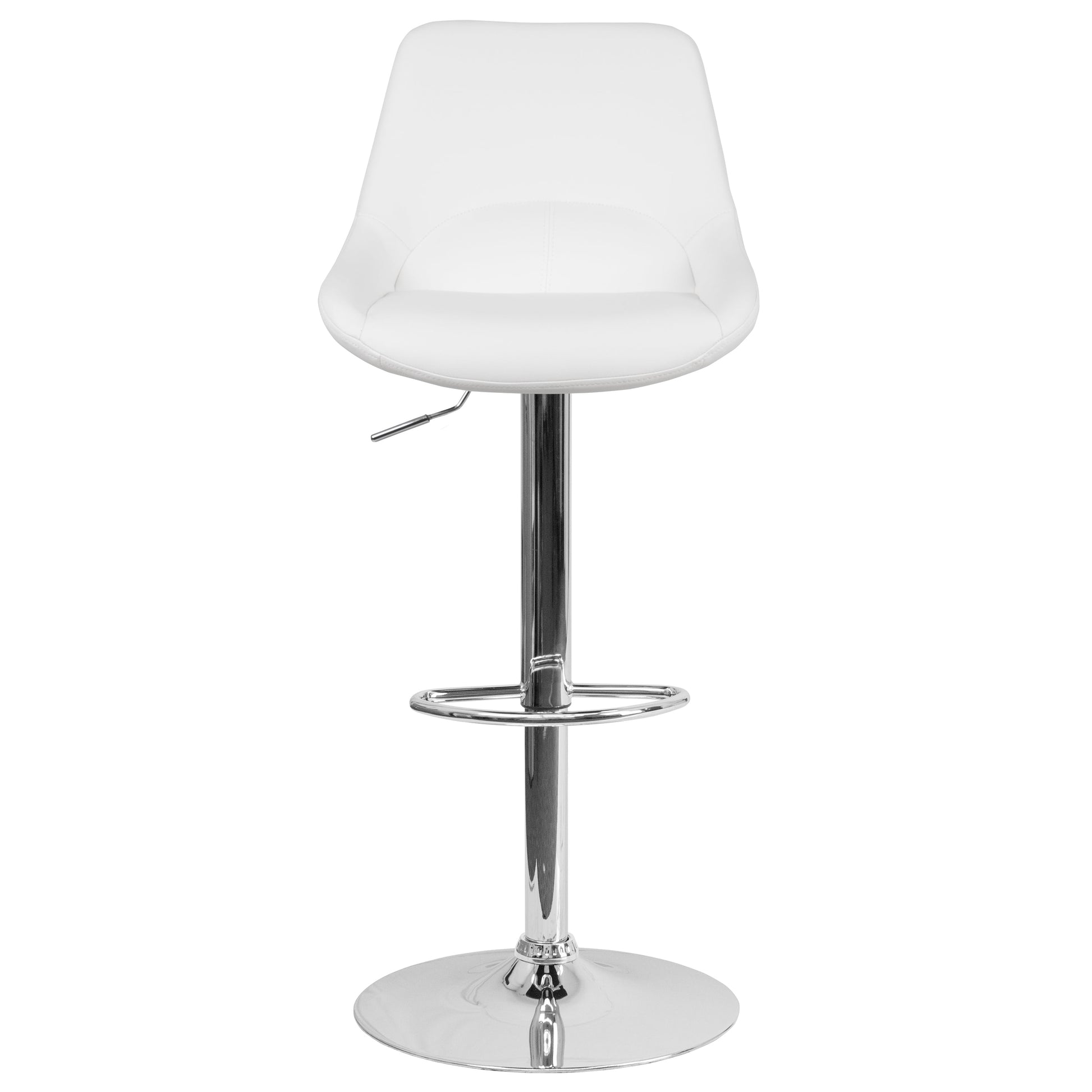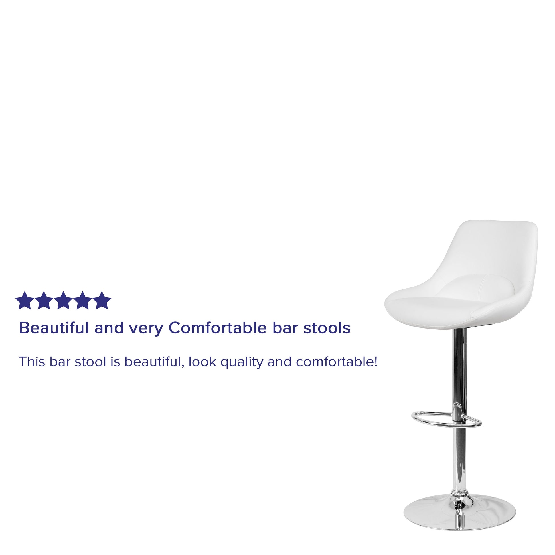 Contemporary White Vinyl Adjustable Height Barstool with Chrome Base Dimensions: 19"W x 22.5"D x 36.5" - 44.5"H