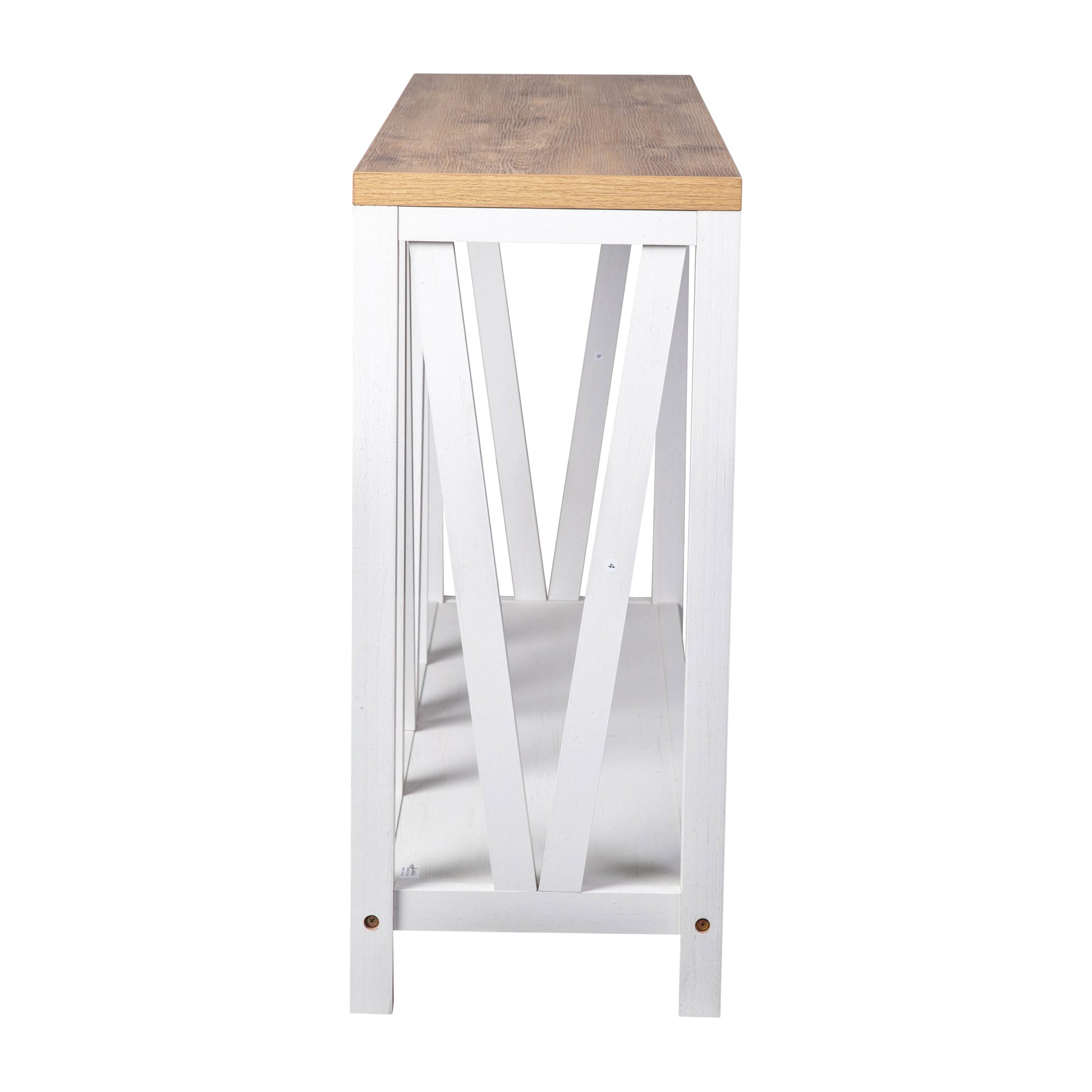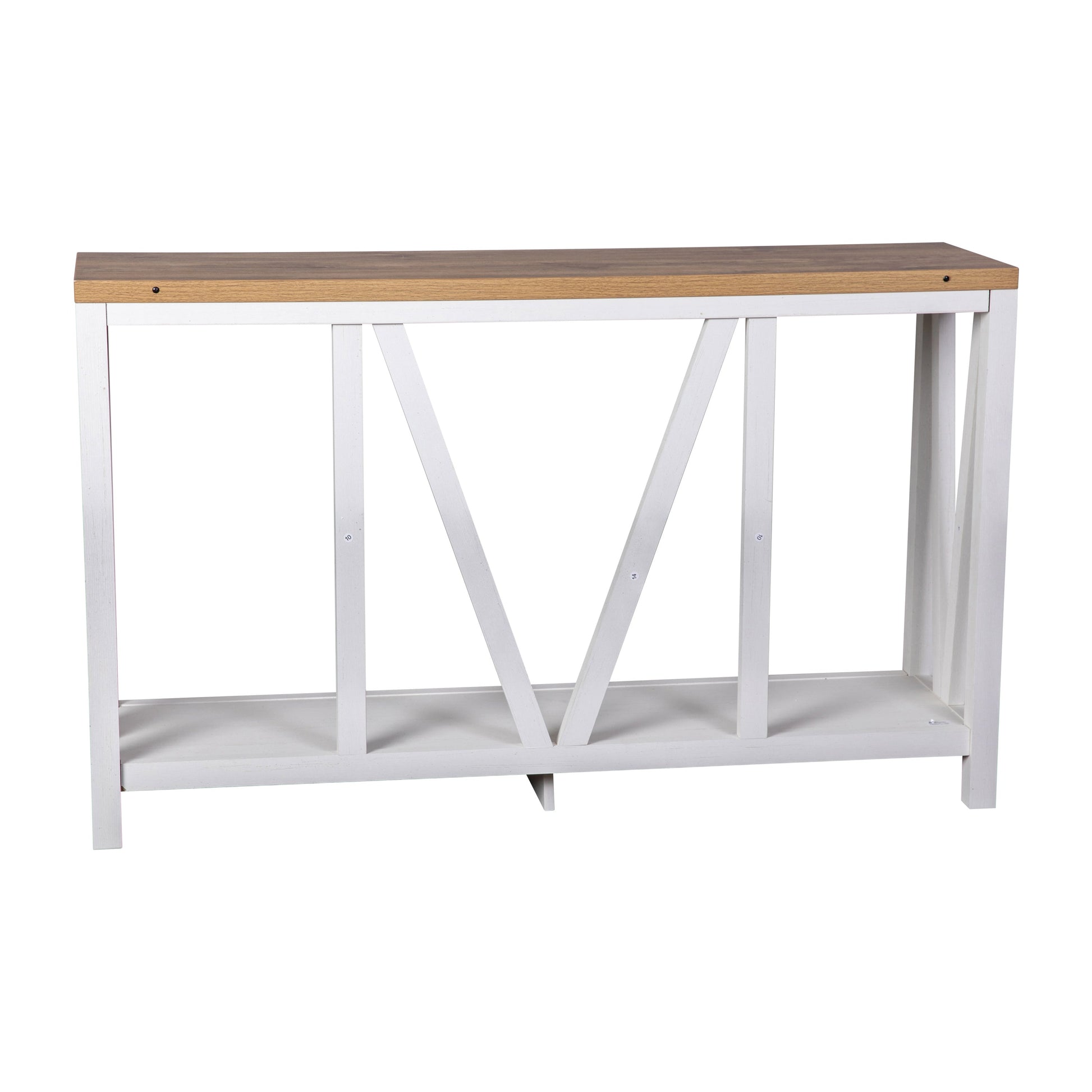 Charlotte Farmhouse 2-Tier Console Accent Table - Brushed White Finish Engineered Wood Frame - Warm Oak Finish Tabletop - For Entryway or Living Room Dimensions: 52"W x 14"D x 32"H