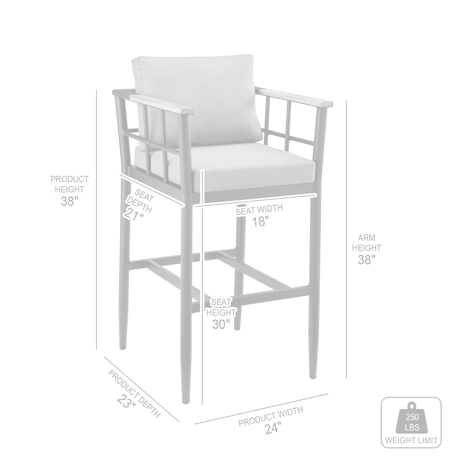 Wiglaf Outdoor Patio Bar Stool in Aluminum and Teak with Cushions
