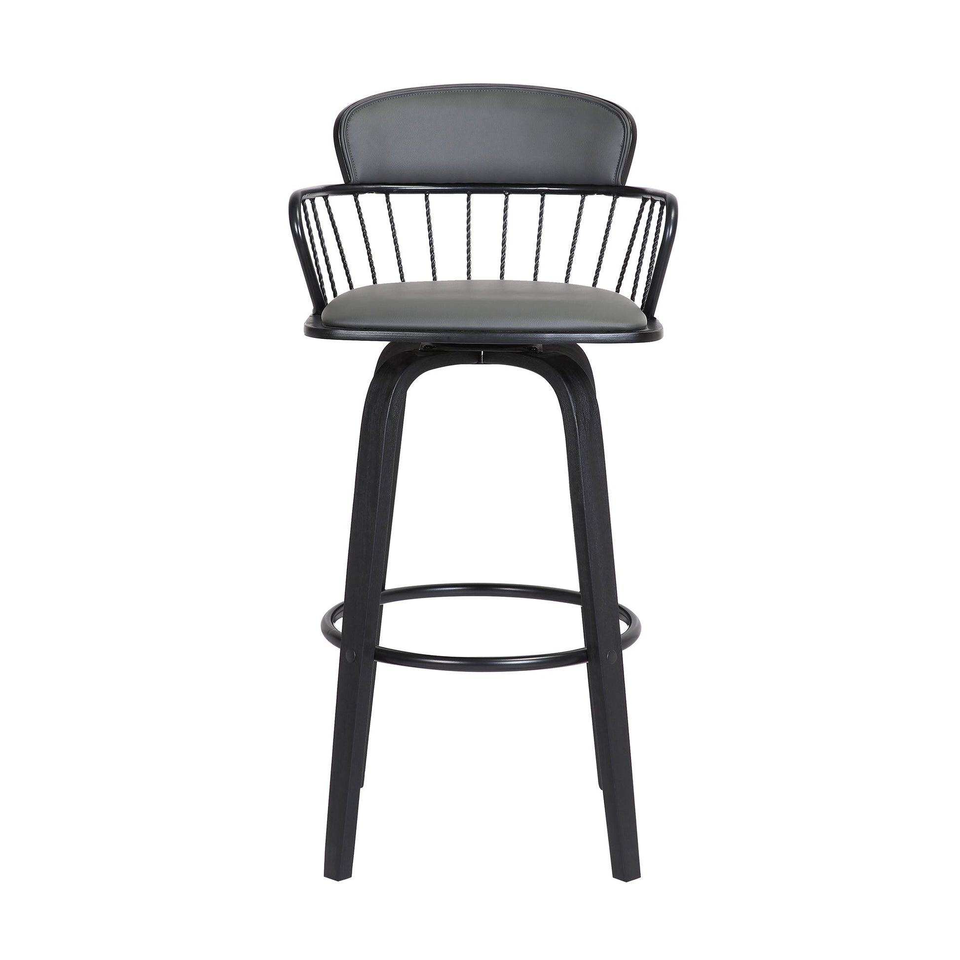 Willow 30" Swivel Wood Bar Stool with Faux Leather and Metal
