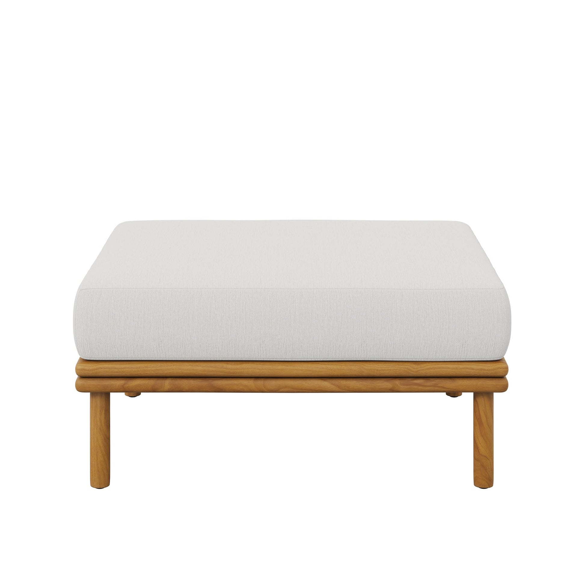 Enjoy the flexibility and charm of the Wren Teak Wood Ottoman, designed for a variety of outdoor settings. This beautifully crafted piece features a teak wood frame renowned for its all-weather qualities and timeless charm. The plush, removable cushion, wrapped in premium Sunproof fabric, offers superior comfort and excellent resistance to the elements, keeping this padded ottoman attractive season after season. With plastic floor glides to protect your surfaces and make repositioning easy, the Wren Outside Ottoman is as practical as it is stylish. Use it on its own as an outdoor footrest, a chic fabric coffee table, additional seating, or pair it with other pieces from the Wren teak patio furniture collection to instantly enhance your outdoor setup. Assembly Required. Weight Capacity: 800 lbs Overall Product Dimensions: 26.97"L x 33.07"W x 16.14"H