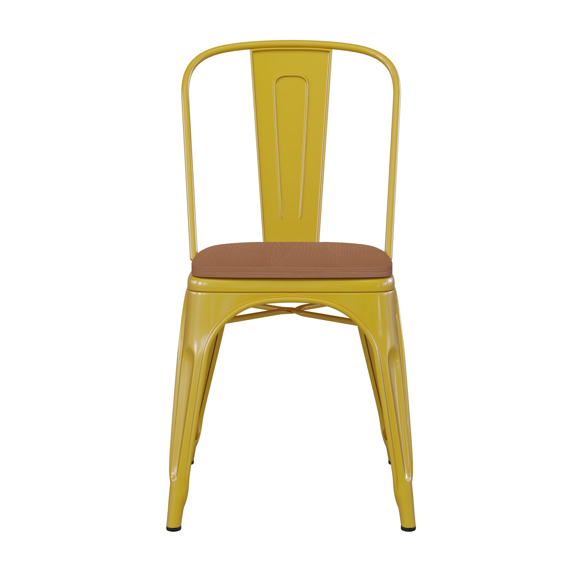 Perry Commercial Grade Yellow Metal Indoor-Outdoor Stackable Chair with Teak Poly Resin Wood Seat Dimensions: 18"W x 20"D x 33"H