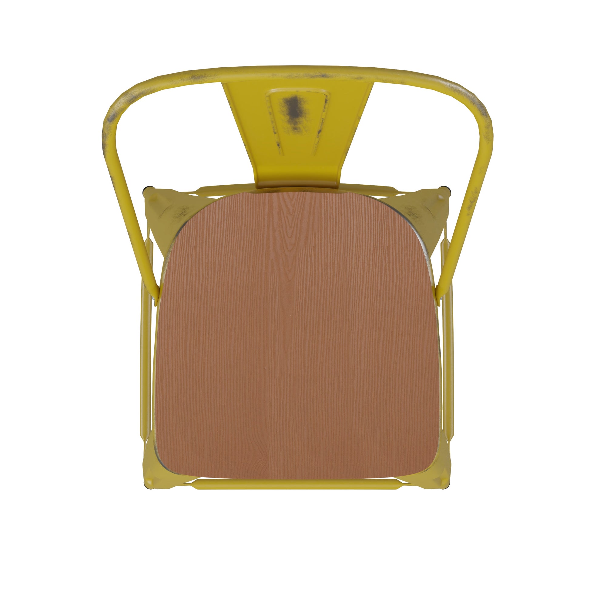 Yellow Metal Stool-Teak Seat ET-3534-24-YL-PL1T-GG