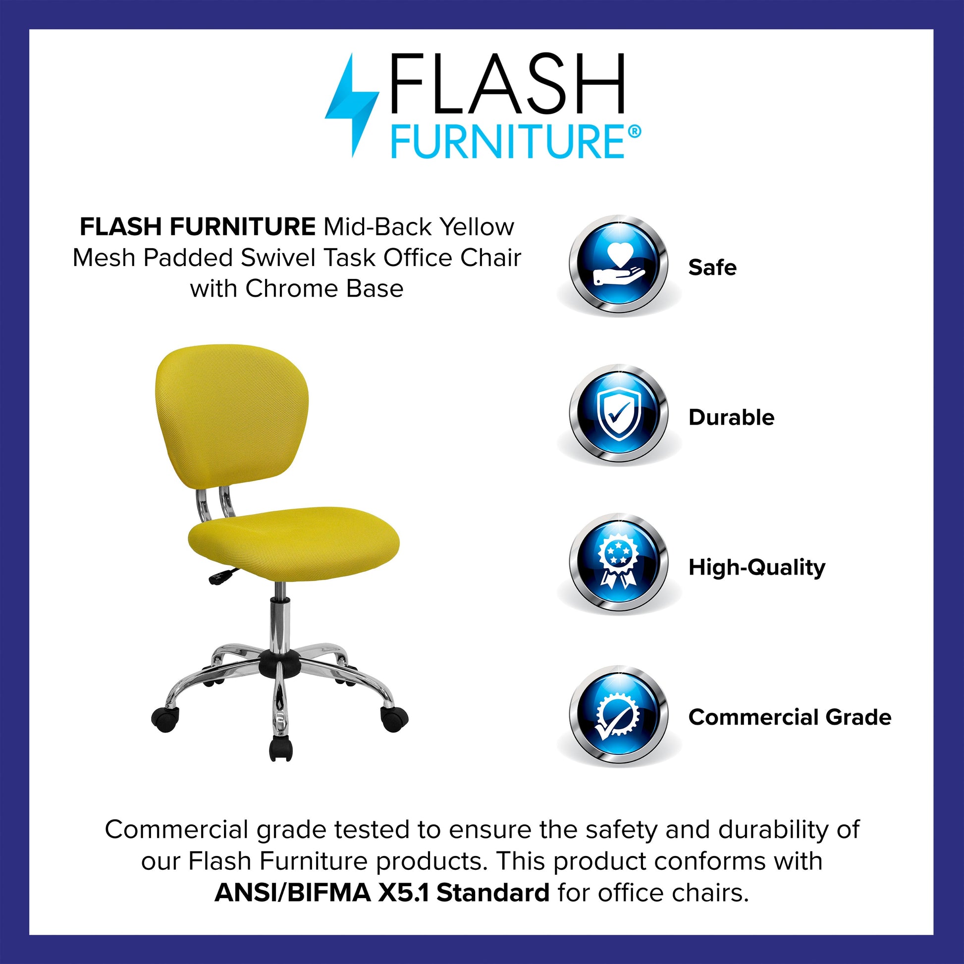 Beverly Mid-Back Yellow Mesh Padded Swivel Task Office Chair with Chrome Base Dimensions: 23.5"W x 25.5"D x 33.5" - 37.5"H