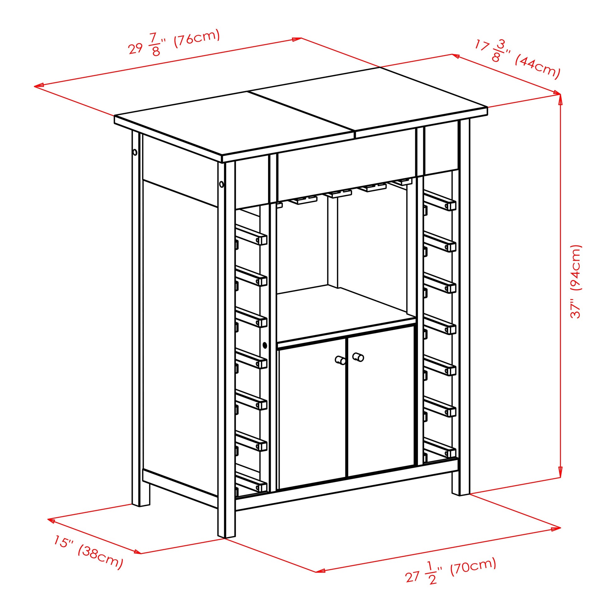 Keep your wine collection neatly stored away by using this Winsome Wood Yukon Wine Cabinet. It offers you a bold, versatile way to store your wine bottles. It has a 14-bottle capacity as well as interior wine glass holders to display your finest. It also has a hidden storage compartment to hold other accessories that may come in handy when guests are over. It has a solid and composite wood construction and has an elegant finish that will go well in your dining or living room area. The Yukon Wine cabinet also features a hidden storage compartment just below the table top. It will surely impress your guests when you extend the top and have plenty serving space to pour several more glasses of wine. Conveniently packed and shipped in 1 box, that includes the hardware necessary for assembling. Replacement part request can be submitted directly to the manufacturer within 60 days from date of purchase.