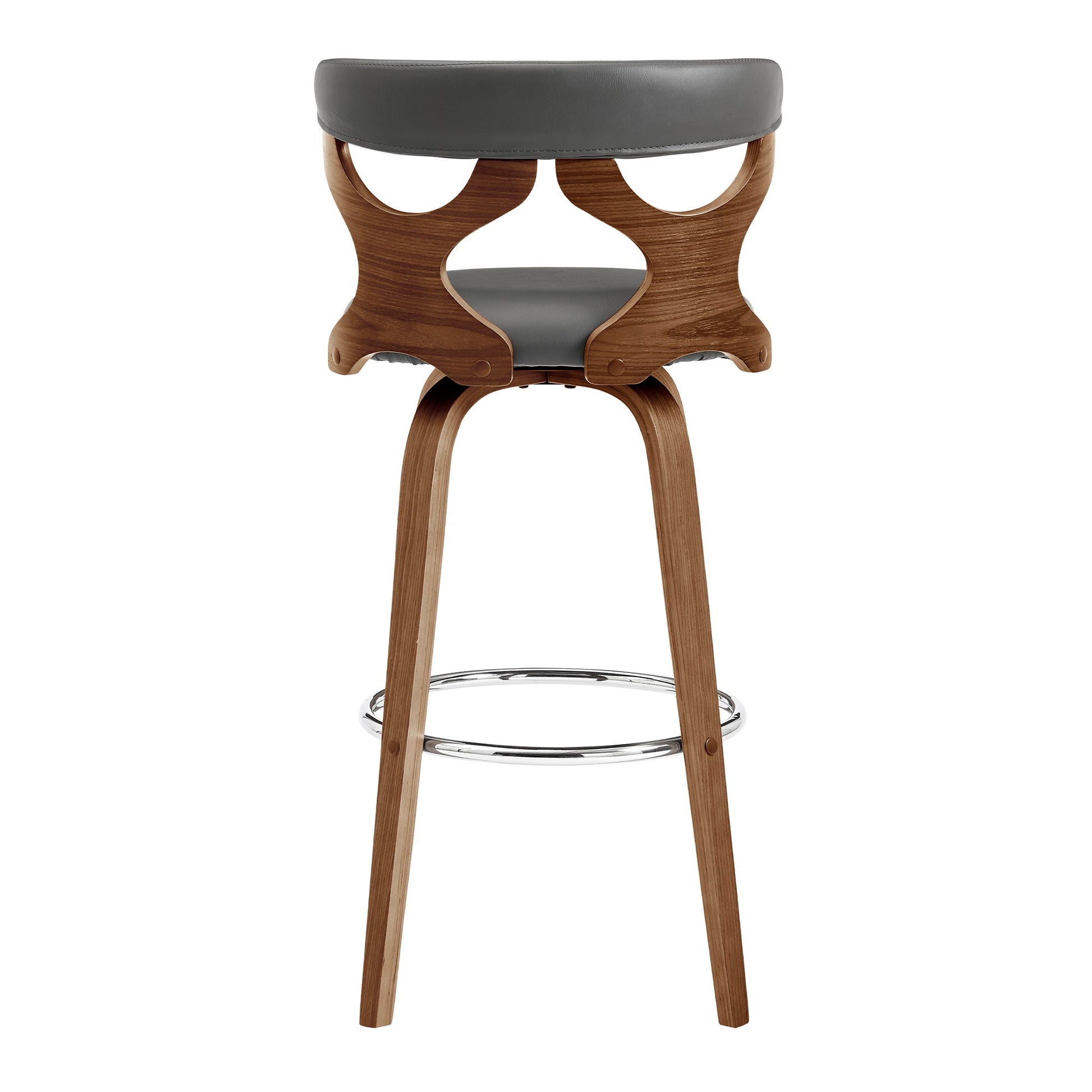 Zenia 26" Swivel Counter Stool in Gray Faux Leather and Walnut Wood