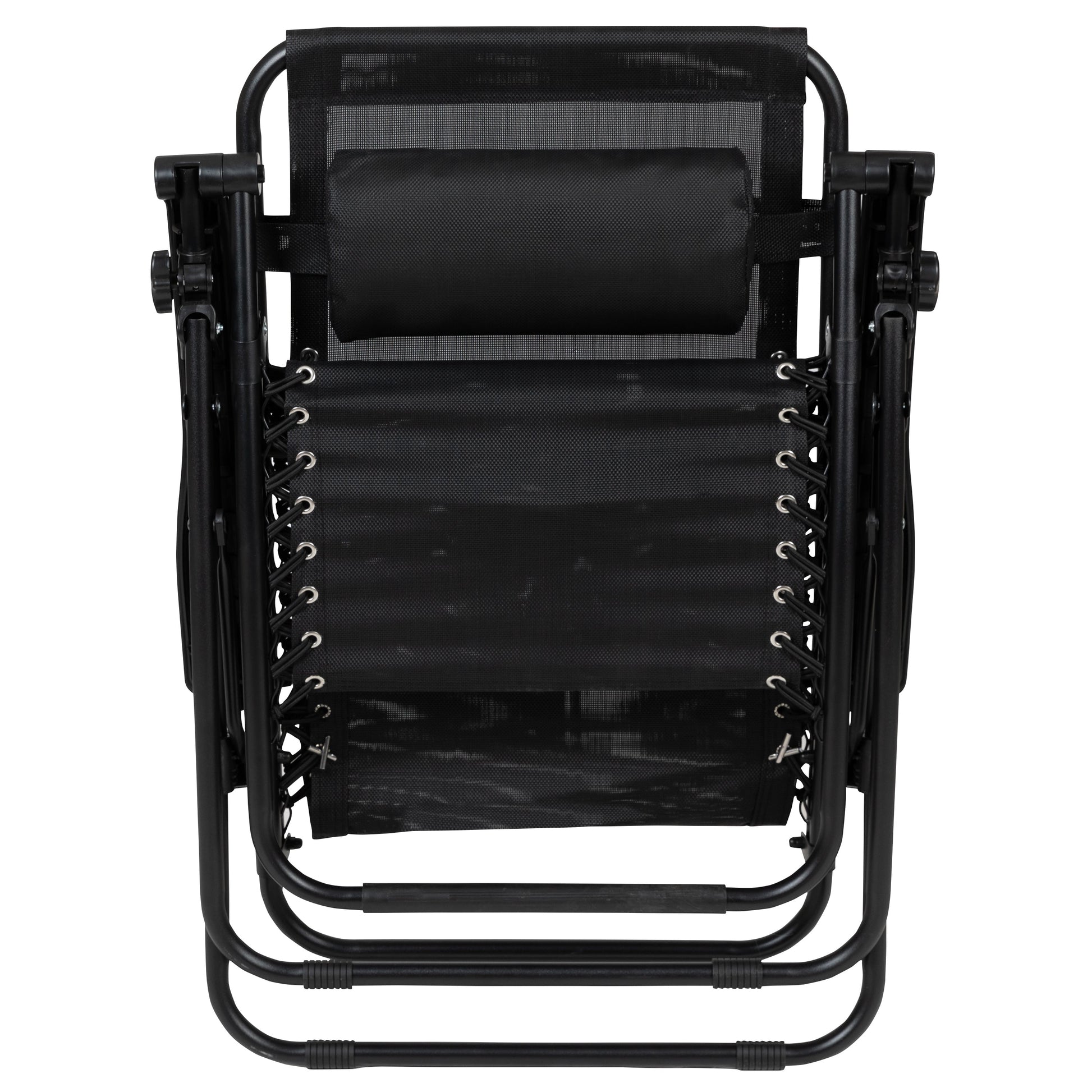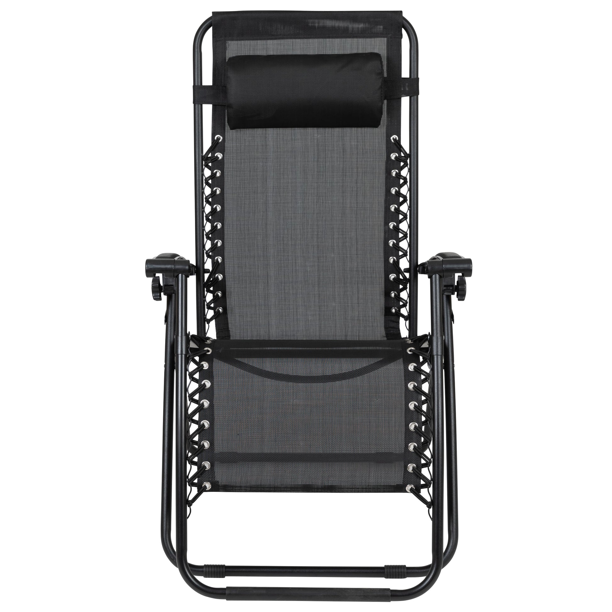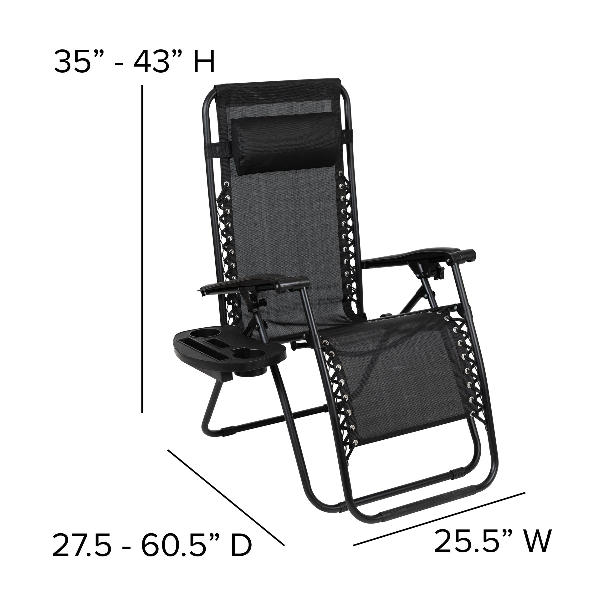 Celestial Adjustable Folding Mesh Zero Gravity Reclining Lounge Chair with Pillow and Cup Holder Tray in Black, Set of 2 Dimensions: 25.5"W x 27.5" - 60.5"D x 35" - 43"H