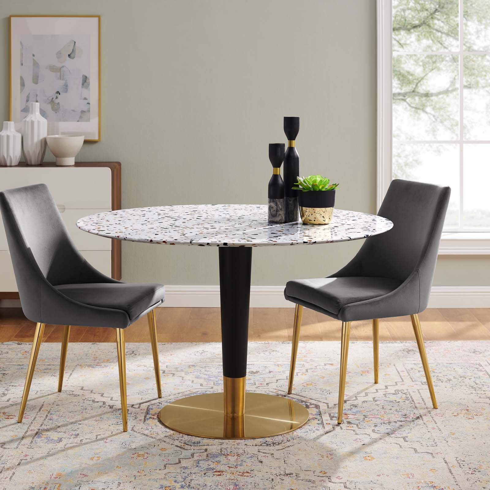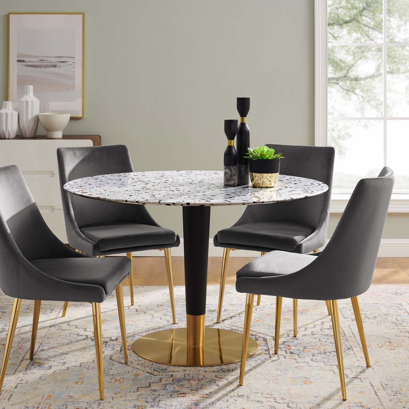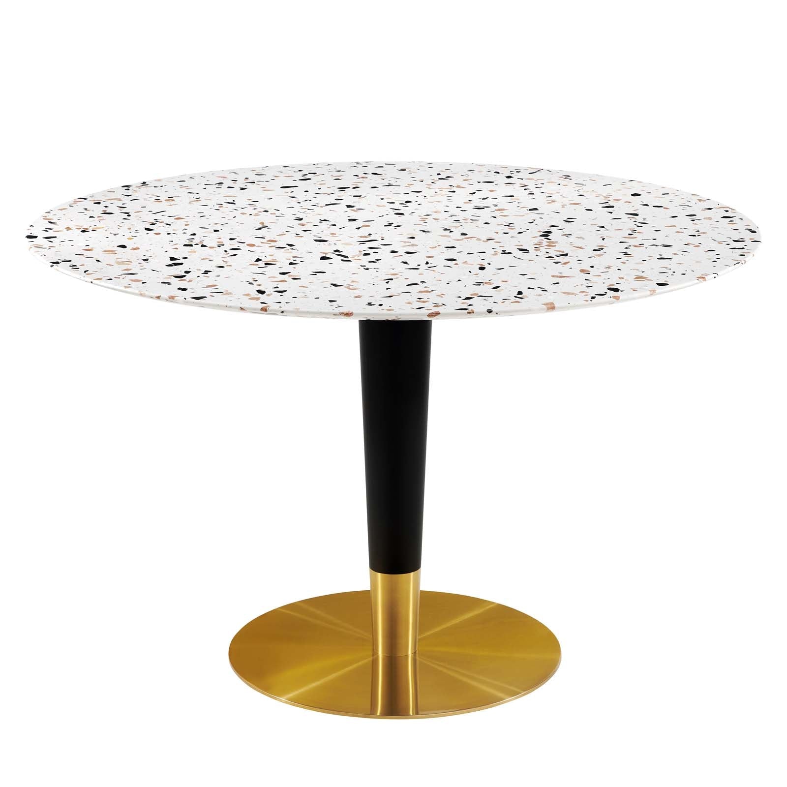 Zinque 47" Round Terrazzo Dining Table Gold White EEI-5732-GLD-WHI