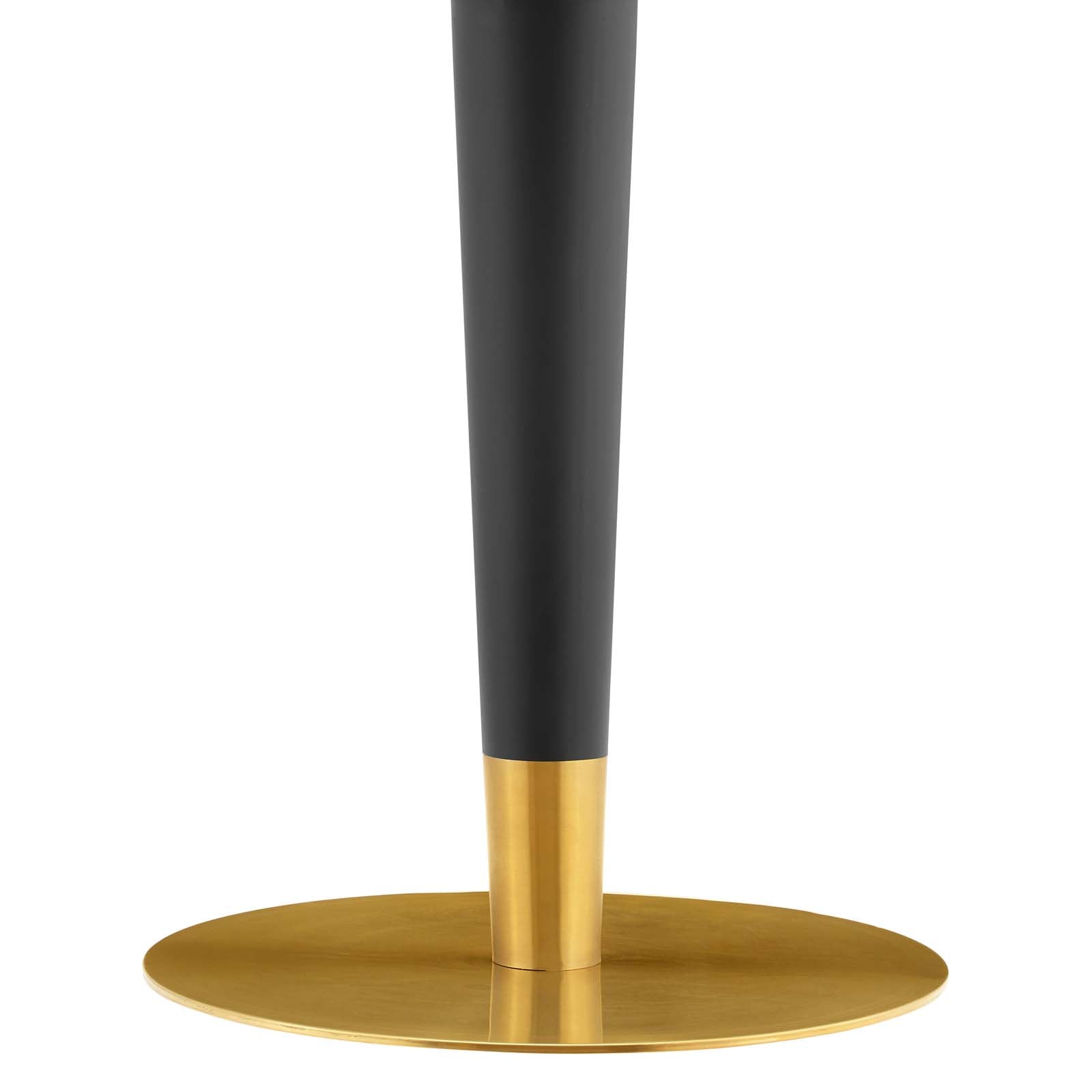 Gather family and friends for good food and conversation around the Zinque Dining Table. Bringing modern influence and mid-century inspiration to your dining space, this pedestal table reflects an organic shape. Perfect for entertaining or everyday dining, this dining table rests on a black and polished gold tapered base and features a 47" terrazzo tabletop. Non-marking ring to protect flooring. Assembly required.