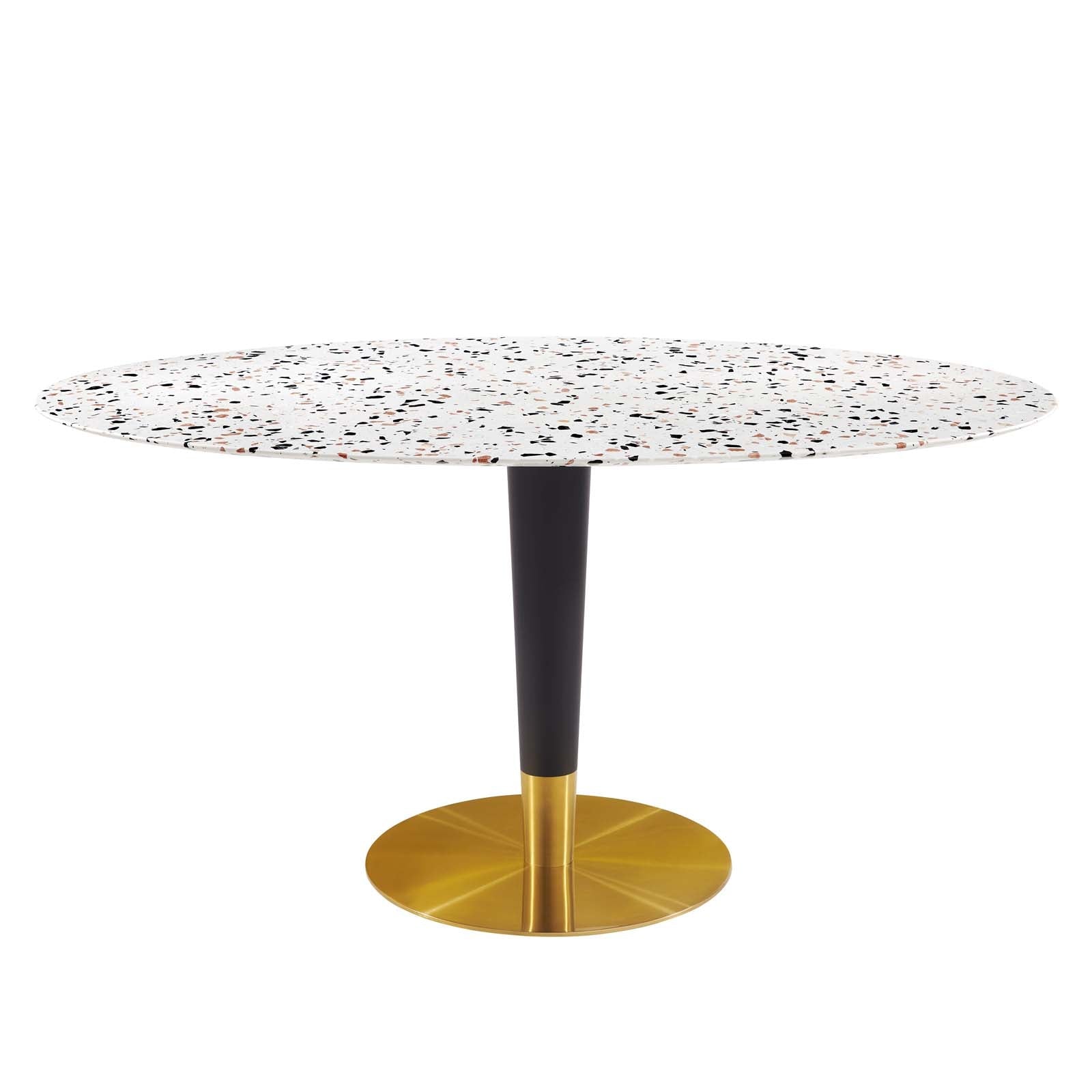 Zinque 60" Oval Terrazzo Dining Table Gold White EEI-5738-GLD-WHI